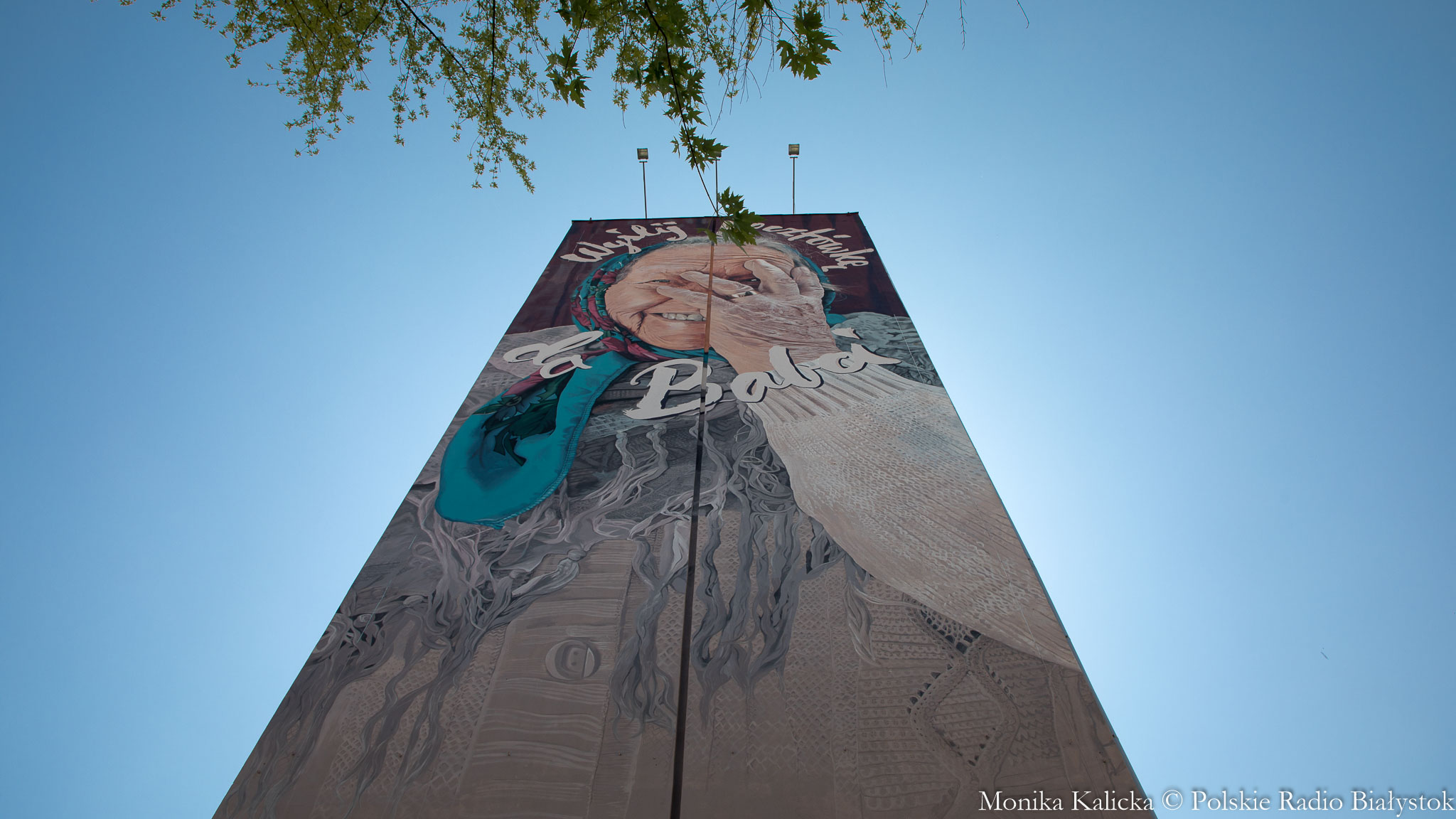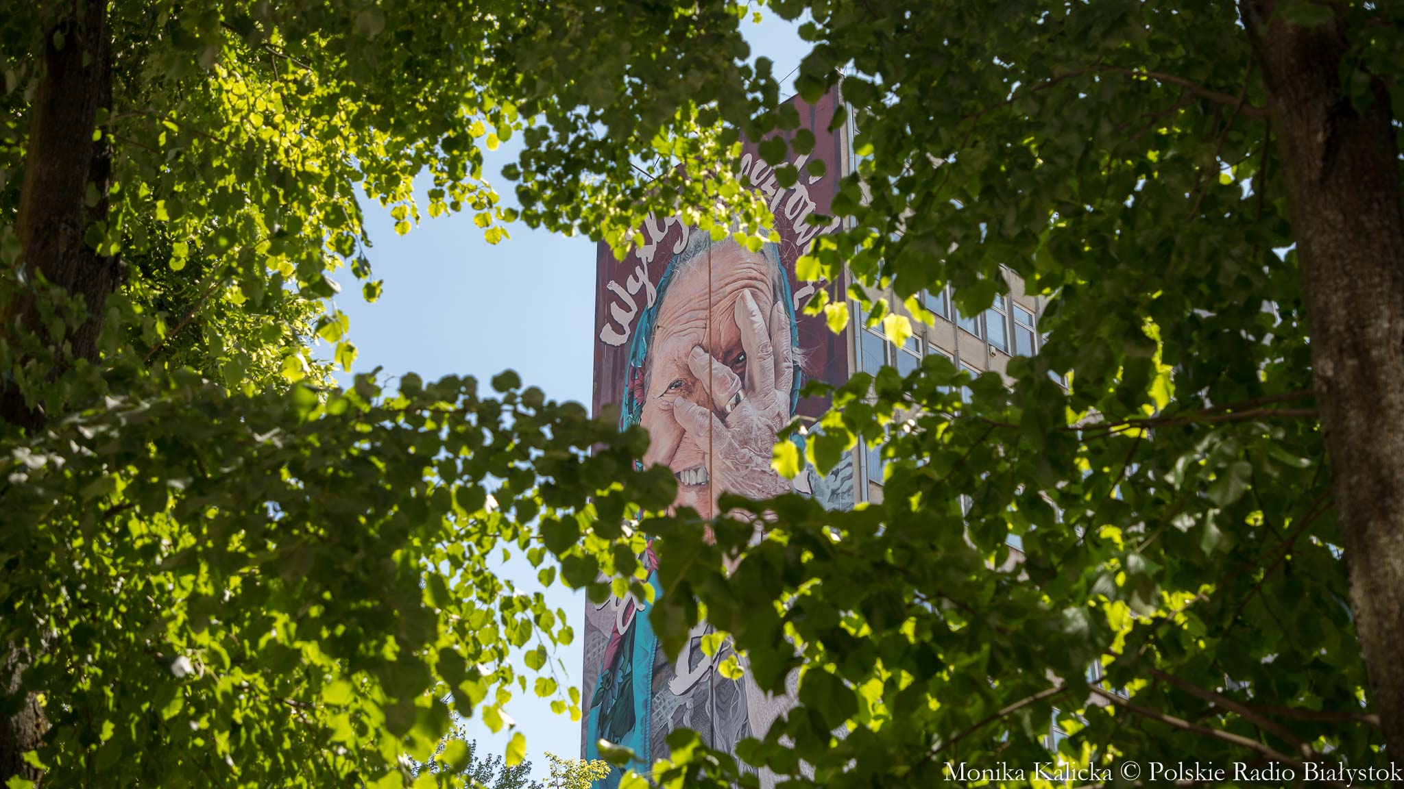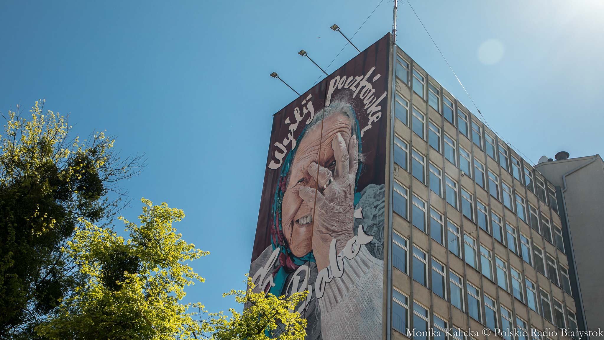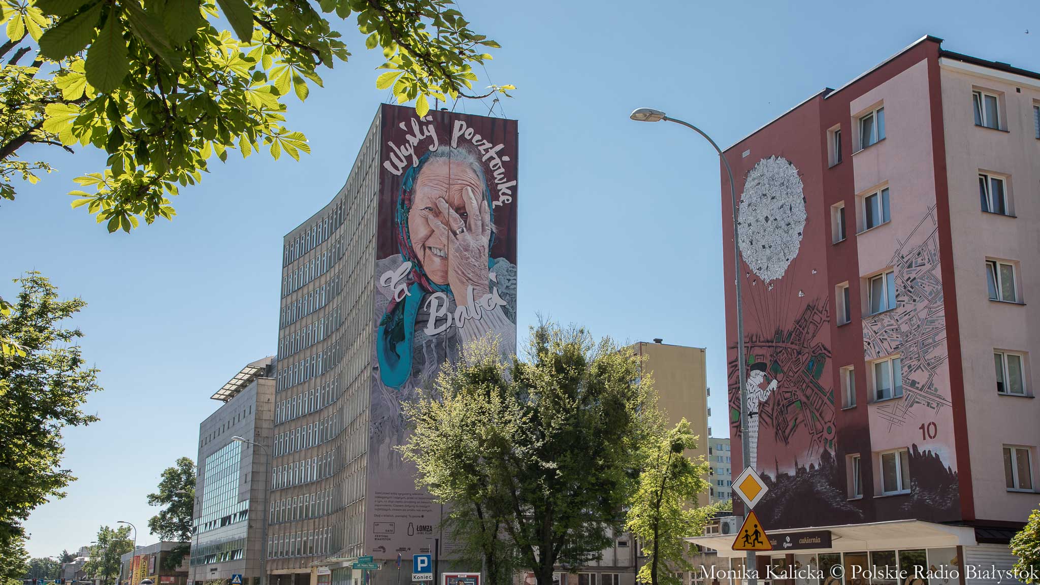 Mural przedstawiający babcię z napisem "Wyślij pocztówkę do babci", który odsłonięto we wtorek w centrum Białegostoku, ma zachęcać do pamiętania o najbliższych. To społeczna akcja organizatorów Up to Date Festival, który po raz 10. odbędzie się w Białymstoku we wrześniu.