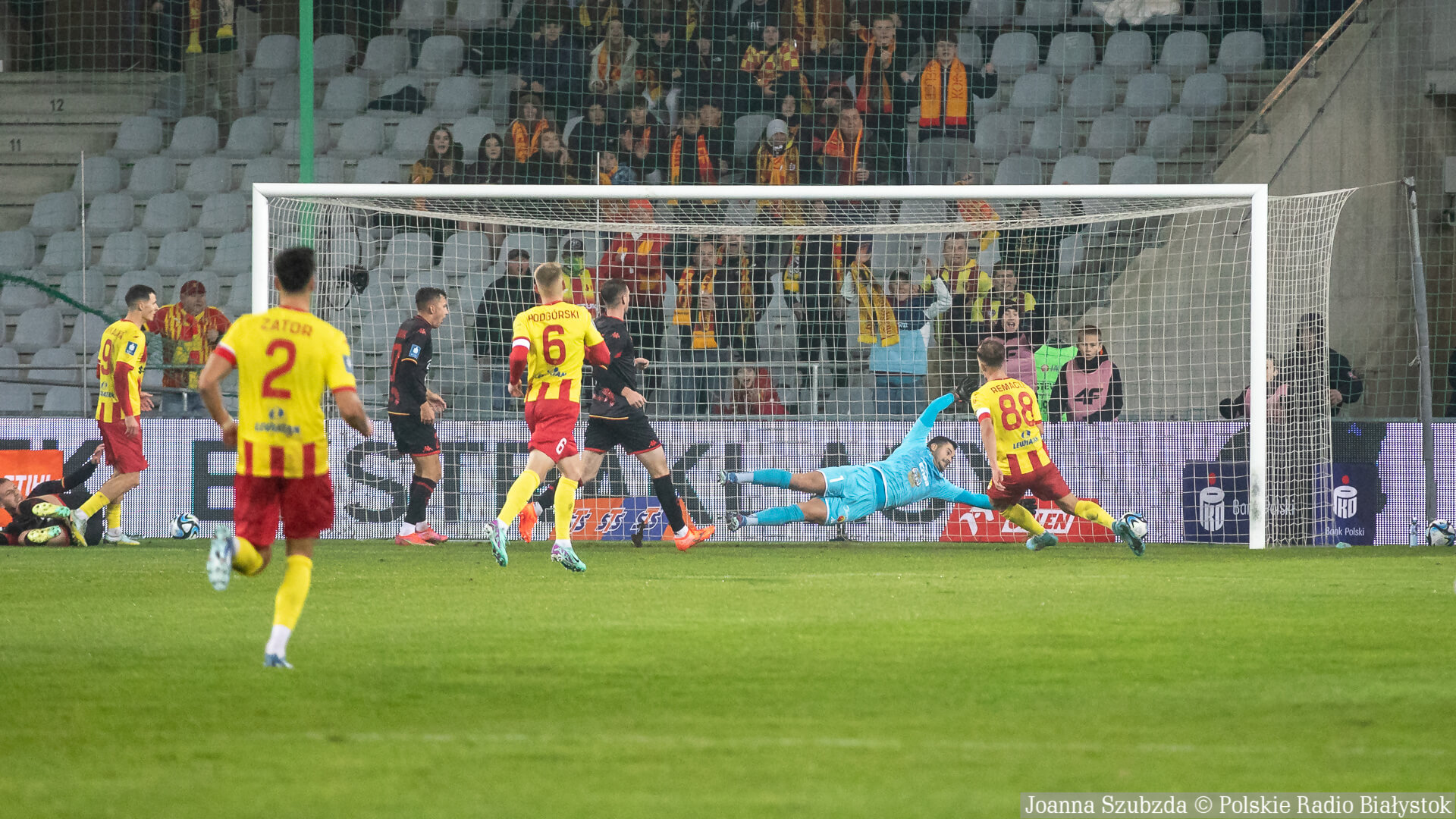 W 56. minucie Jagiellonia Białystok strzeliła wyrównującego gola. Pięknym dośrodkowaniem w pole karne popisał się Dieguez. Piłkę próbował złapać Dziekoński, ale wyprzedził go Jesus Imaz i pokonał młodego bramkarza gospodarzy.