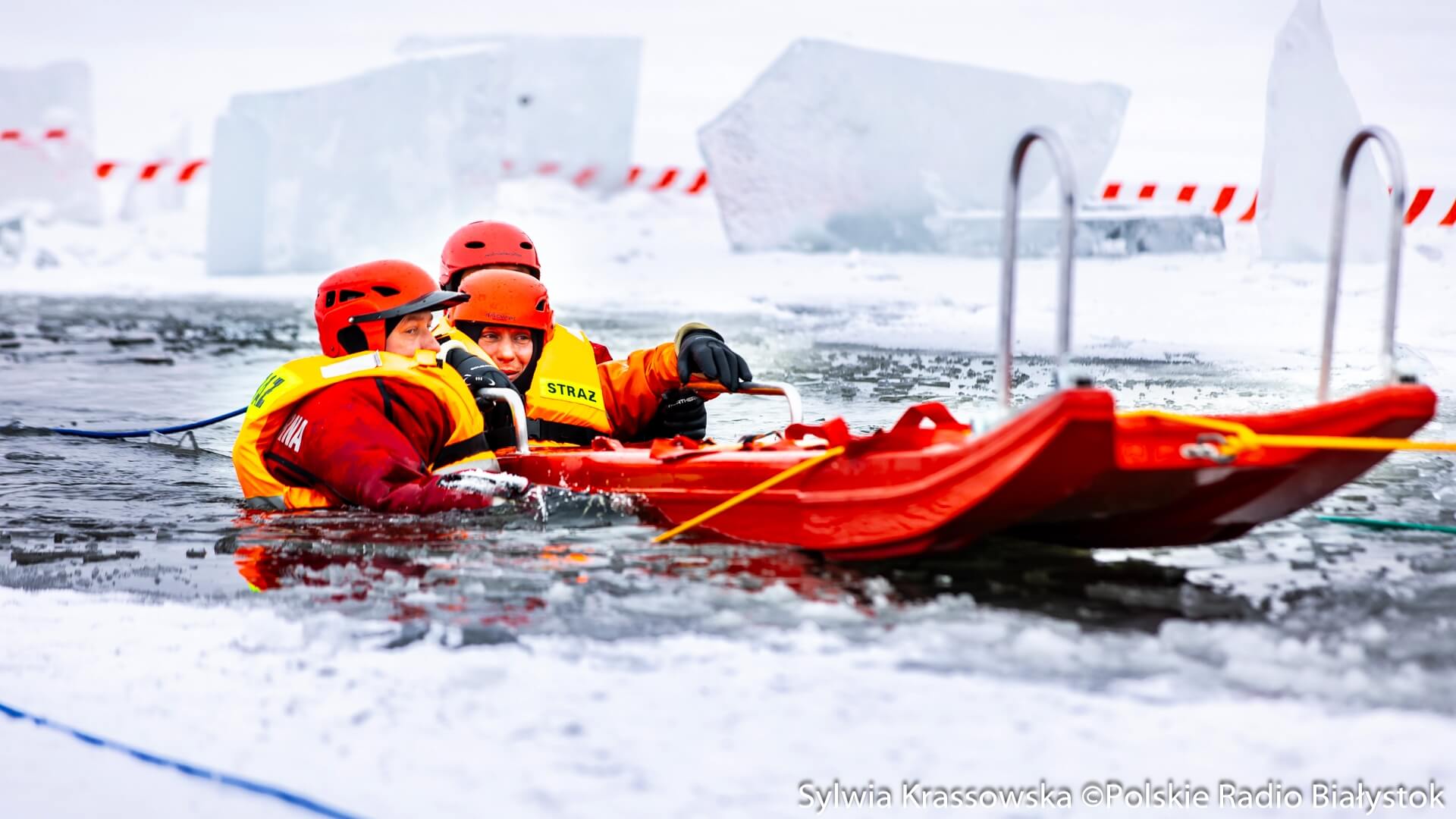 Radio Białystok | Galerie | Galerie - Gdy pęknie lód - ćwiczenia strażaków na Dojlidach [zdjęcia, wideo]