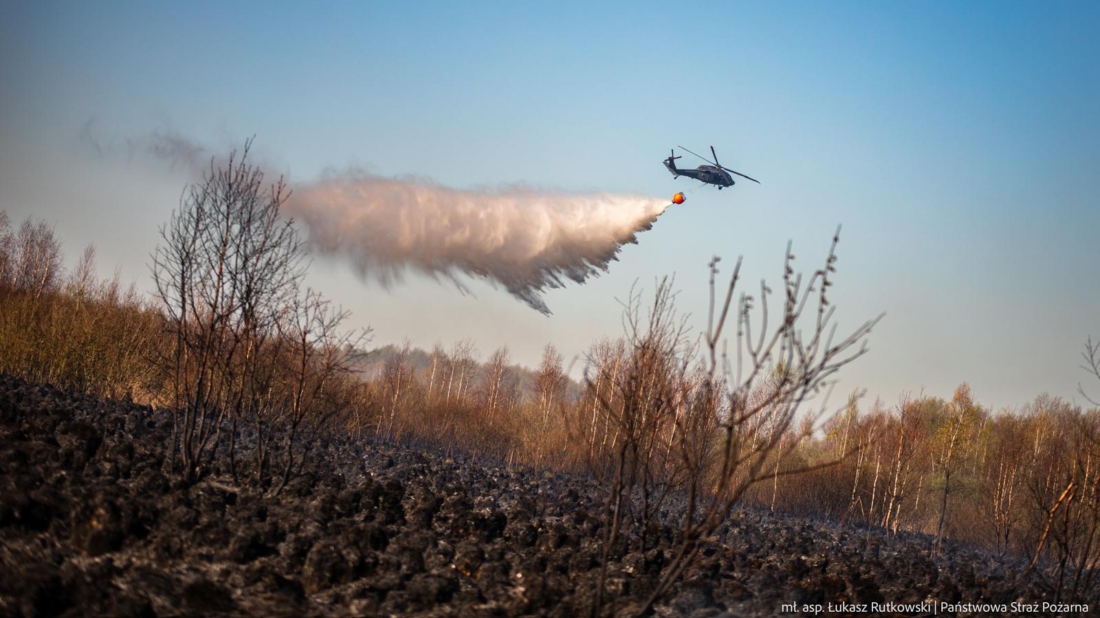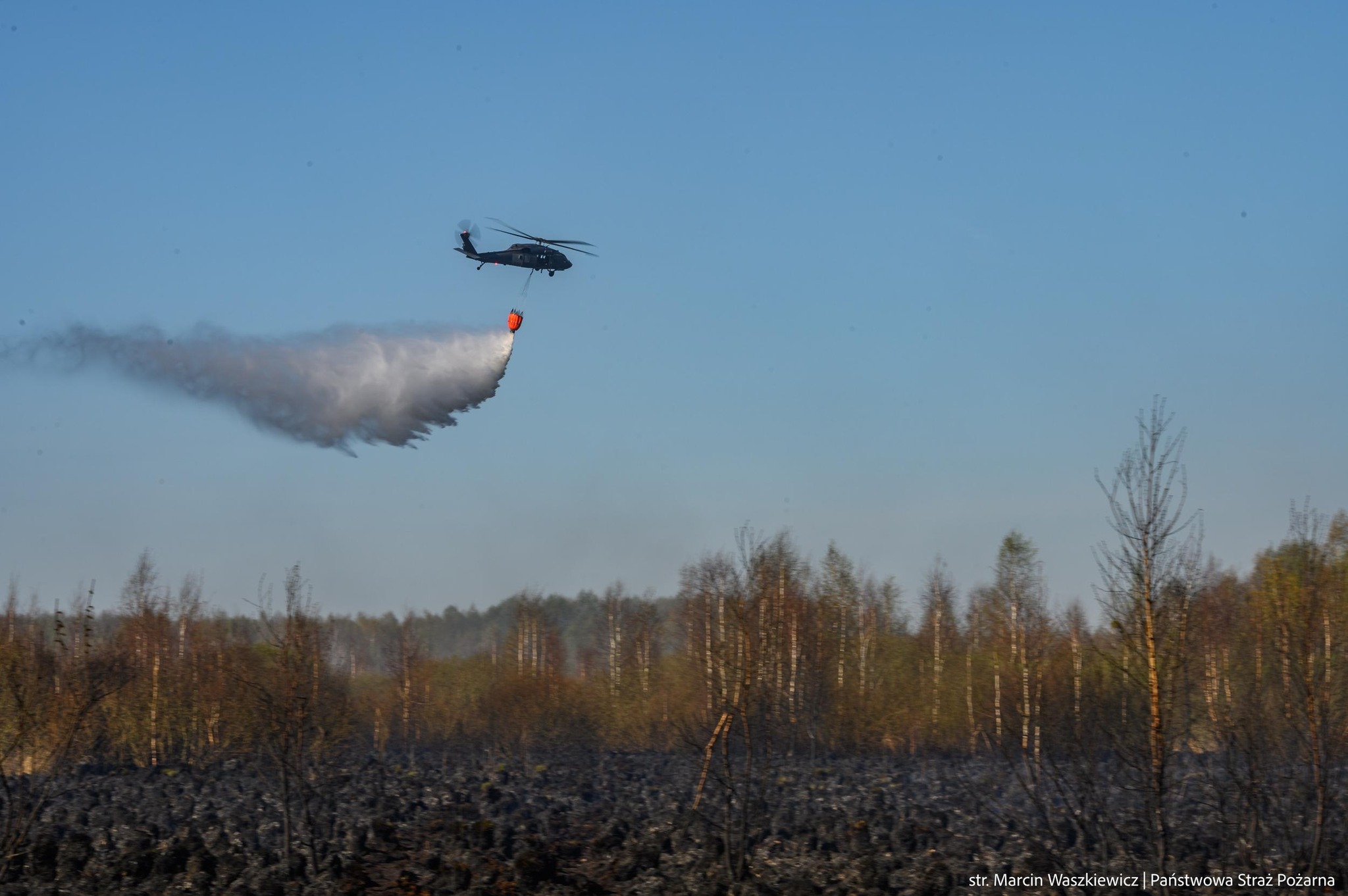 Pojawił się helikopter wojskowy Black Hawk i śmigłowiec Lasów Państwowych, do których doczepione zostały zbiorniki z wodą. Skierowane zostały w okolice miejscowości Polkowo, gdzie ogień ponownie się pojawił.