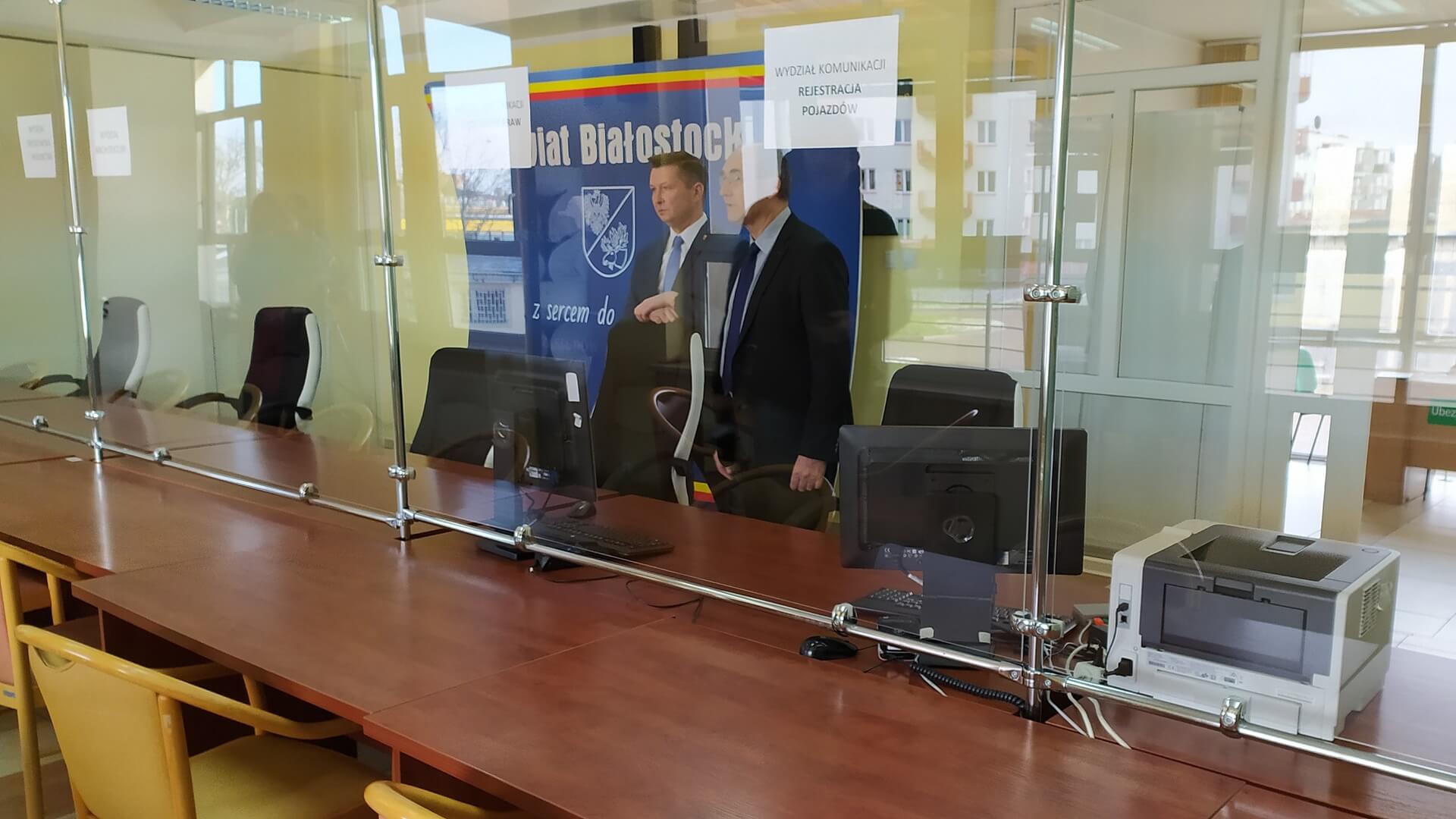- Przygotowaliśmy salę obsługi petenta; biuro podawcze, gdzie wszystkie wydziały będą miały swoje okienka. Sprawy będą załatwiane na sali, która w trybie pilnym została przebudowana. Zostały wstawione plexi, żeby nie było kontaktu bezpośredniego. Wprowadzimy zasadę w przyszłym tygodniu, że mieszkańcy powiatu białostockiego będą się musieli uprzednio umówić telefonicznie na wizytę w urzędzie, żeby nie było kolejek. Także zamknęliśmy Wydział Komunikacji w Łapach na czas trwania tej krótkiej kwarantanny - mówi starosta powiatu białostockiego Jan Perkowski.
