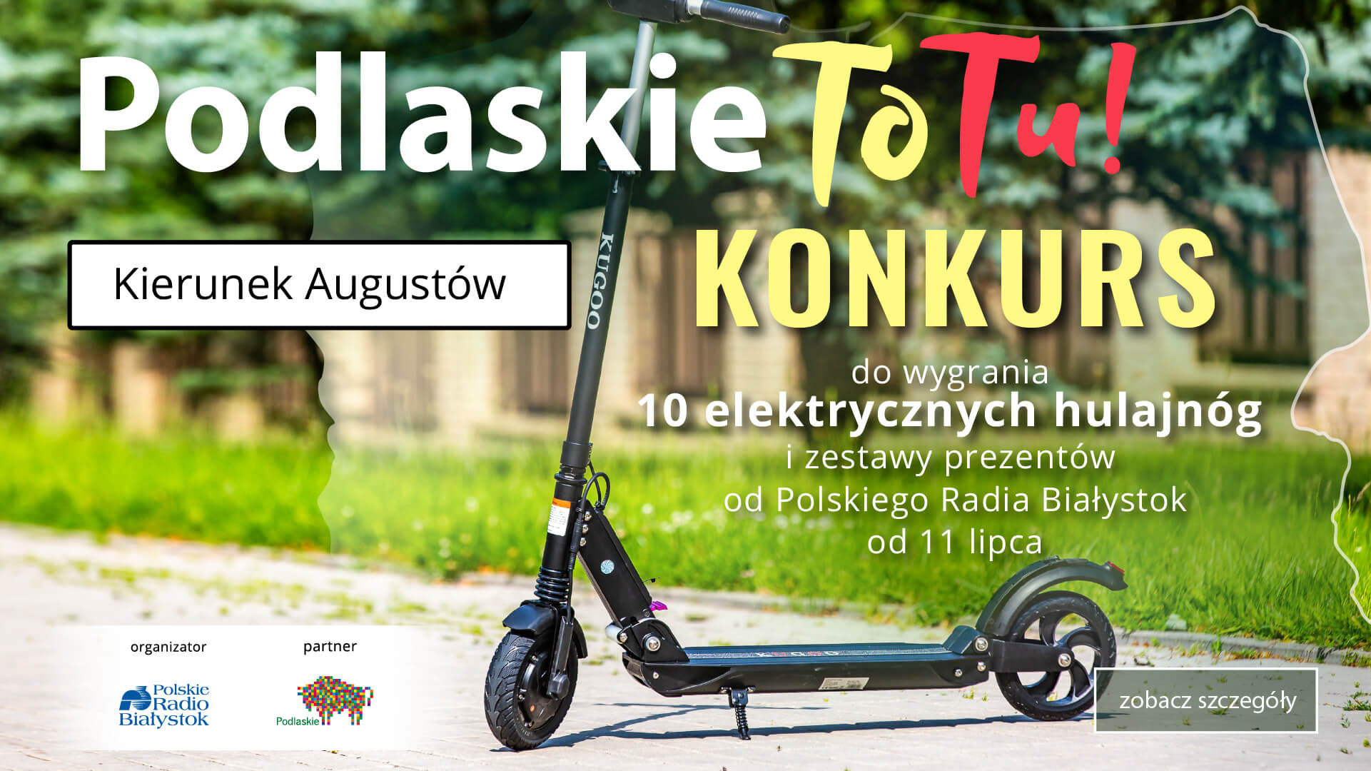 Przykładowo: pan Stefan odpowiedział na wszystkie pytania w ciągu 25 sekund, a równie bezbłędna pani Maria - w ciągu 20 sekund, więc zwycięzcą dnia jest oczywiście pani Maria. Zwycięzca dnia wygrywa codzienną nagrodę główną: elektryczną hulajnogę oraz zestaw gadżetów Radia Białystok - worek sportowy, smycz, bidon. Pozostali uczestnicy również nie odejdą z pustymi rękami i otrzymają od nas worek sportowy, smycz i bidon.