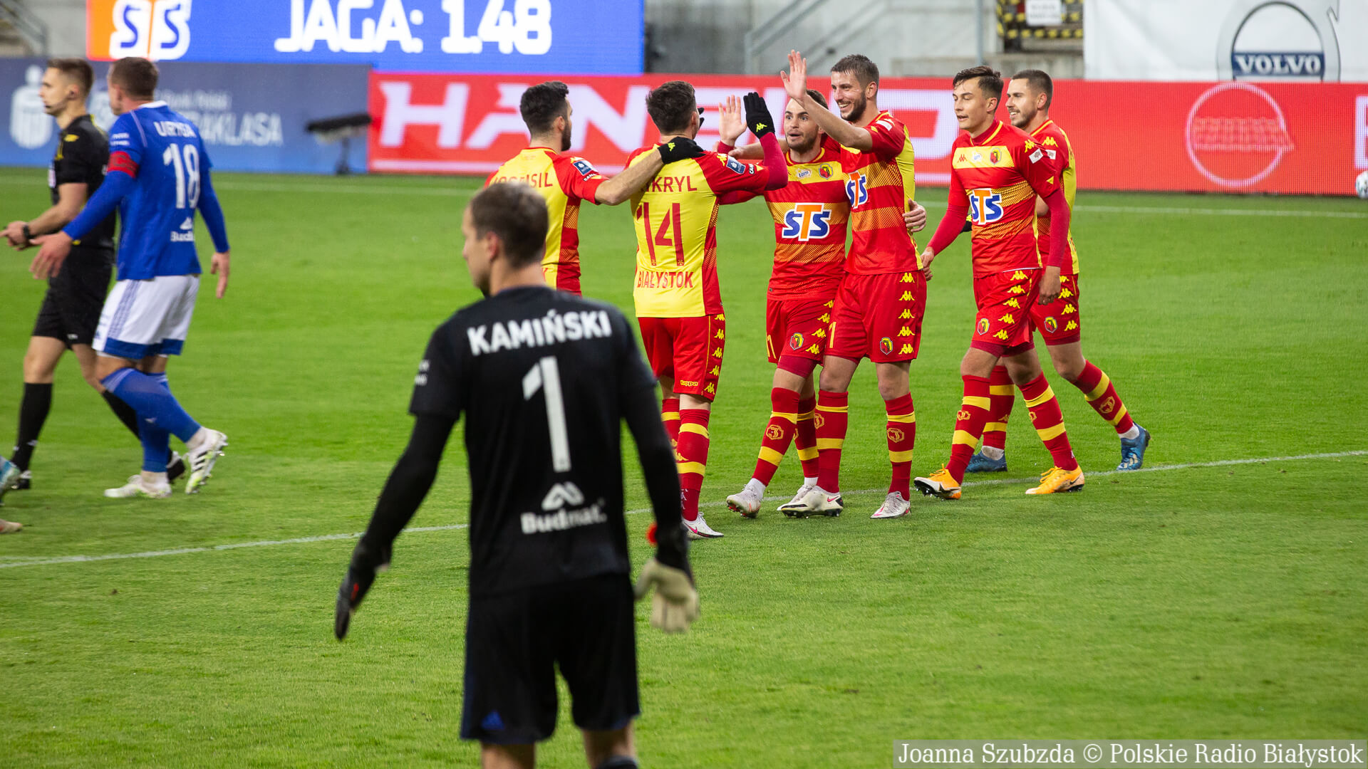 Aż 7 bramek padło w poniedziałkowym (23.11) meczu Jagiellonii Białystok z Wisłą Płock. Żółto-czerwoni pokonali Nafciarzy 5:2 (2:0). Trzy gole dla Jagiellonii strzelił Jakov Puljić, a po jednym Jesus Imaz i Martin Pospisil.