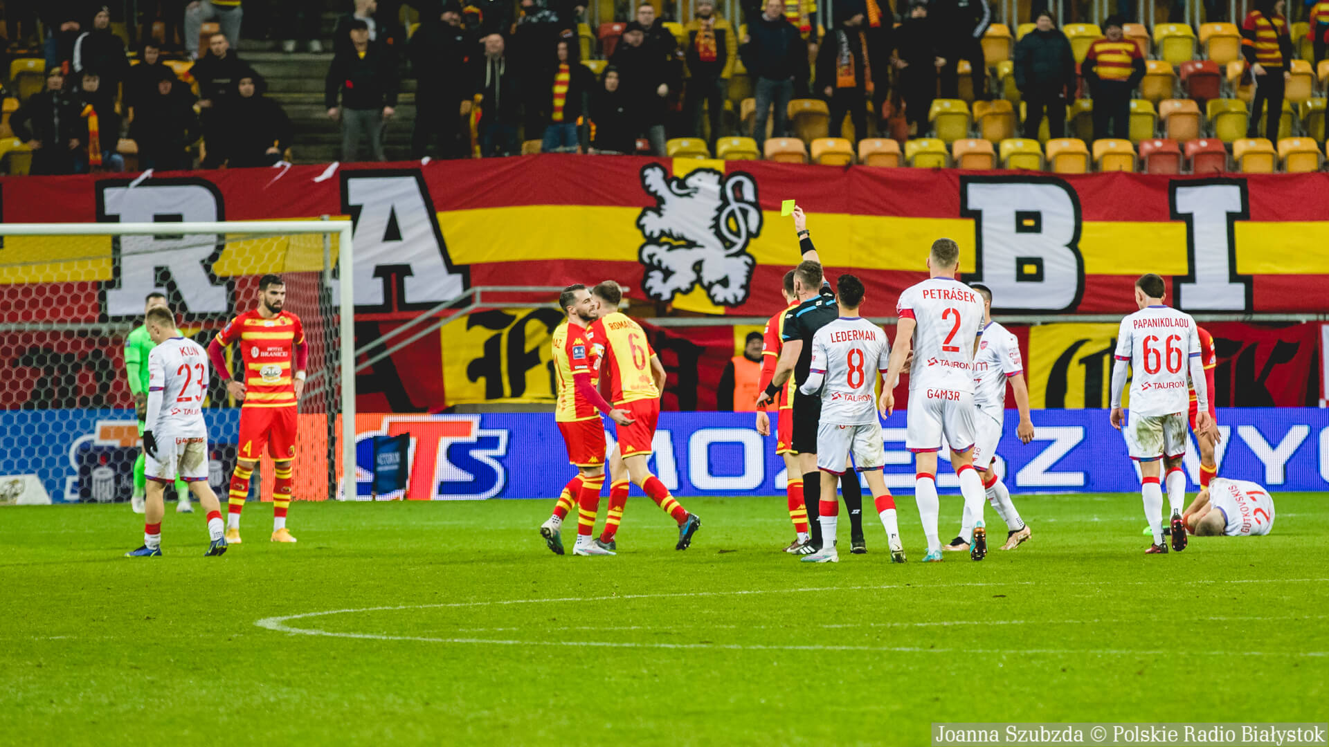 Żółta kartka - Jagiellonia Białystok: Taras Romanczuk. Raków Częstochowa: Patryk Kun, Gustav Berggren.