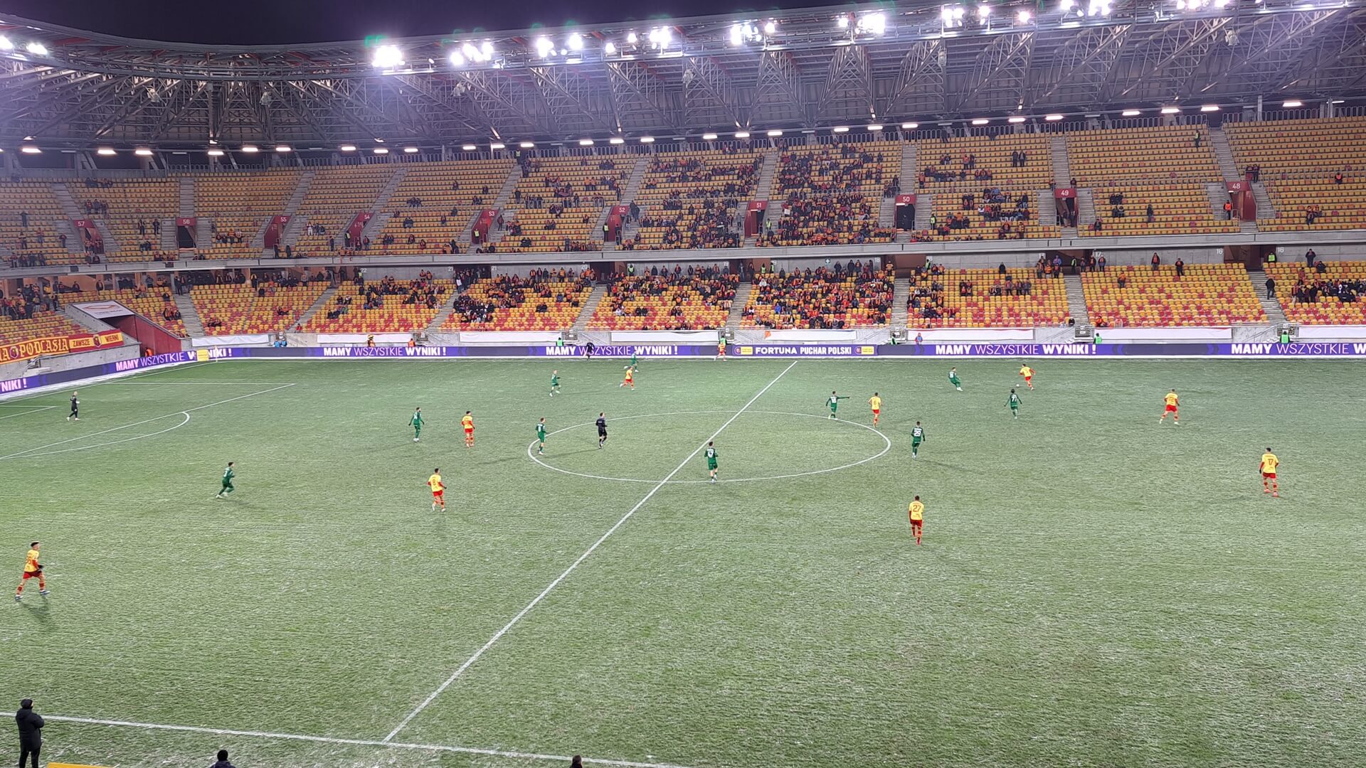 Spotkanie było rozgrywane przy bardzo mroźnej aurze. Termometry na początku meczu pokazywały w Białymstoku -7 st. Celsjusza, a odczuwalna temperatura była jeszcze niższa.