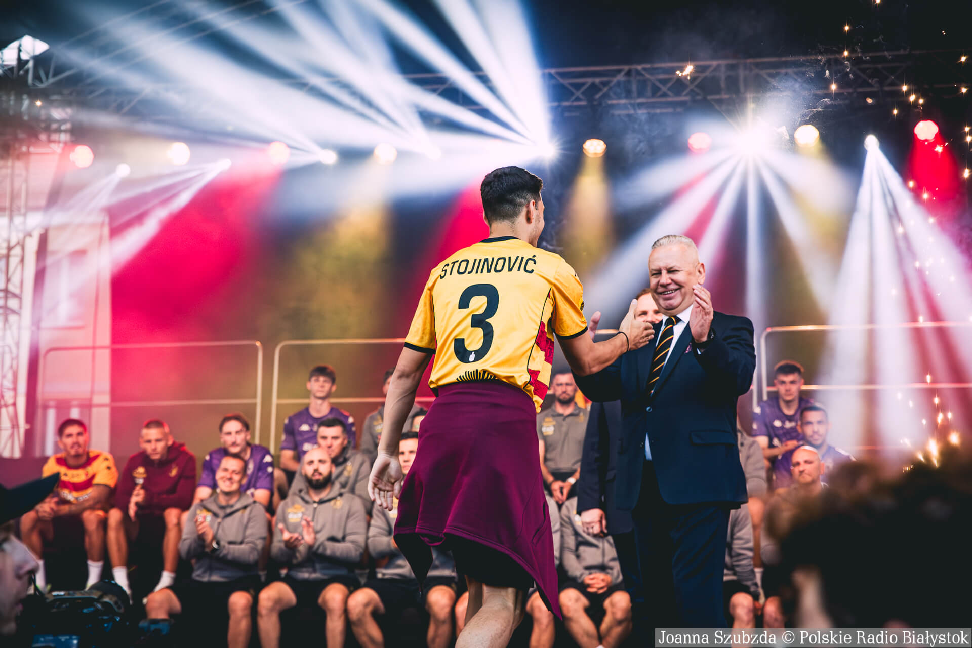 Na scenie przy ratuszu zaprezentowali się wszyscy zawodnicy i sztab trenerski. Była to też oficjalna prezentacja nowych domowych i wyjazdowych strojów Jagiellonii.