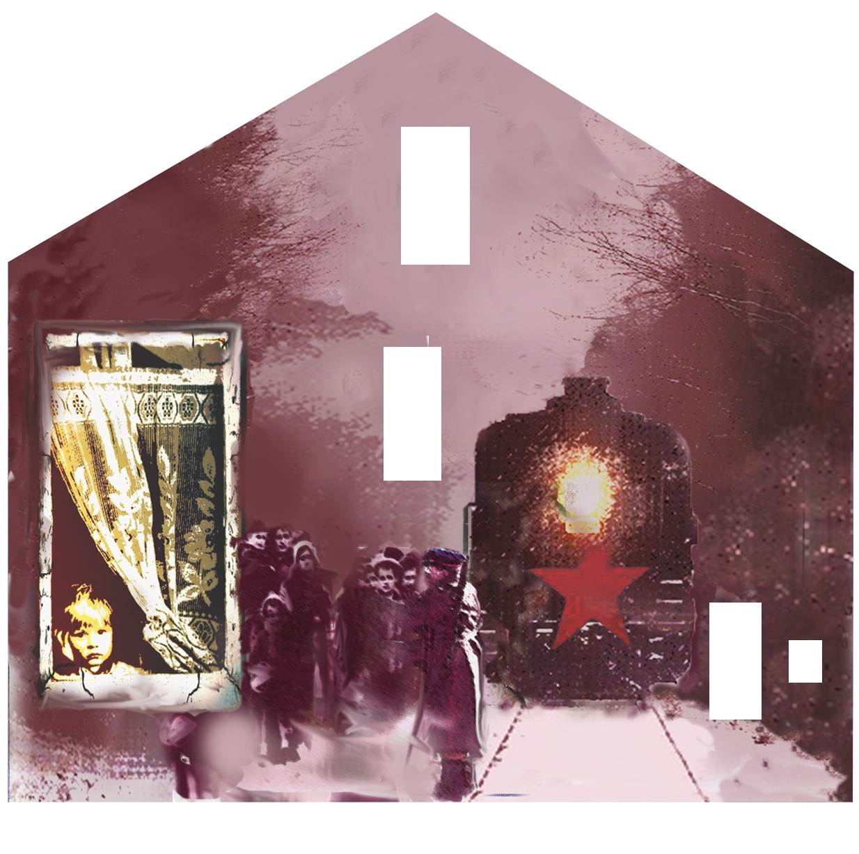 Powstał w miejscu, gdzie stał dom jednej z mieszkanek Wizny, która została wywieziona. Obraz zaprojektowała Karolina Pielak. Przypomina on o wywózce mieszkańców Wizny między innymi do Kazachstanu. Widać na nim kobiety i dzieci, żołnierzy NKWD, wagony i lokomotywę z czerwoną gwiazdą.