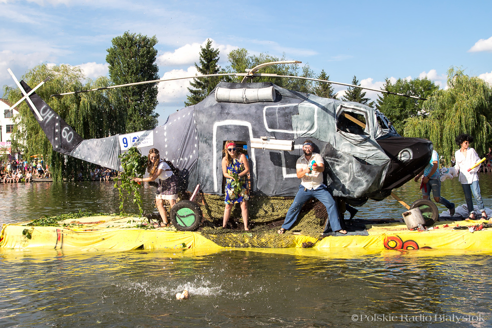 "Black Hawk Helikopter w ogniu" skonstruowany przez załogę z Supraśla to zwycięzca tegorocznych Mistrzostw Polski w Augustowie w Pływaniu na Byle Czym z Polskim Radiem Białystok "Co ma pływać nie Utonie".