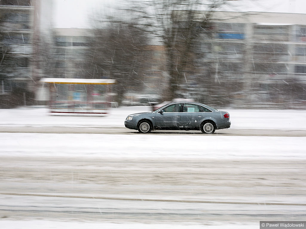 Białe drogi są również w miastach. Na przykład w Łomży pracują wszystkie pługi i posypywarki, ale padający śnieg uniemożliwia oczyszczanie ulic - tłumaczą przedstawiciele miejskiej spółki odpowiedzialnej za odśnieżanie ulic w Łomży.