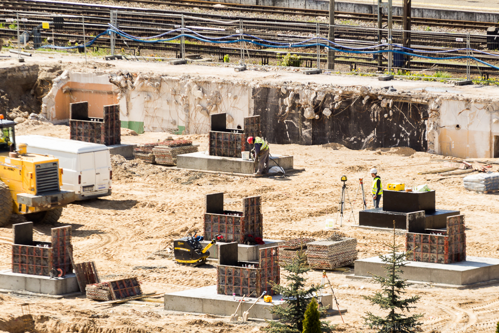 Na placu widać już miejsca, gdzie będą wiaty przystankowe, są też postawione fragmenty stacji kontroli pojazdów. Na razie w miejscu, gdzie stanie dworzec trwają prace ziemne i kończy się rozbiórka tunelu.
