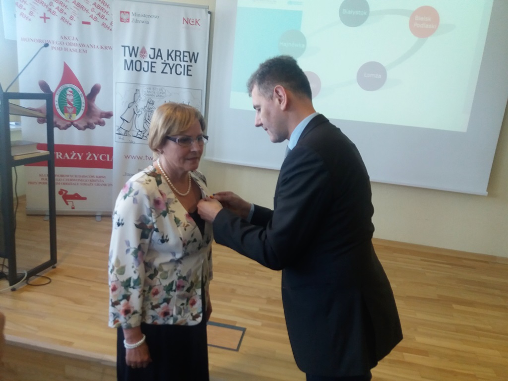W Regionalnym Centrum Krwiodawstwa i Krwiolecznictwa w Białymstoku wielu krwiodawców otrzymało w środę (14.06) wyróżnienia, w tym państwowe odznaczenie: Honorowy Dawca Krwi - Zasłużony dla Zdrowia Narodu. Wręczone zostały też Złote Krople - nagrody specjalne Dyrektora RCKiK w Białymstoku, Kryształowe Dyplomy, Pamiątkowe Medale oraz podziękowania dla zaangażowanych w propagowanie idei Honorowego Krwiodawstwa.
