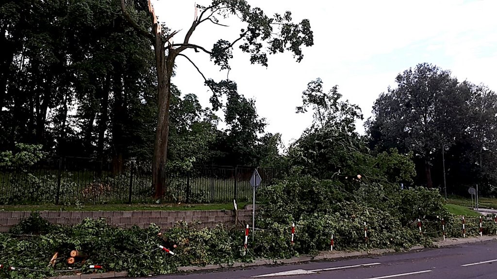 Awarie energetyczne, powalone drzewa, uszkodzone budynki i zalane piwnice - to skutki gwałtownych burz z gradem i ulewami, które przechodzą nad północno-wschodnią Polską.