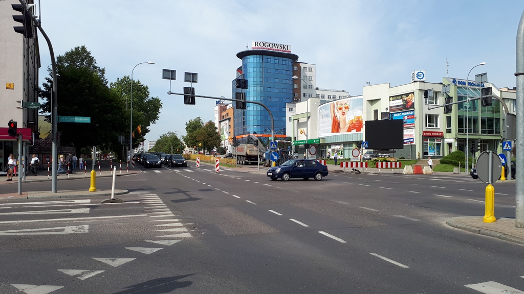 • skręt w lewo w ul. M. Skłodowskiej-Curie, potem w ul. Jerzego Waszyngtona.