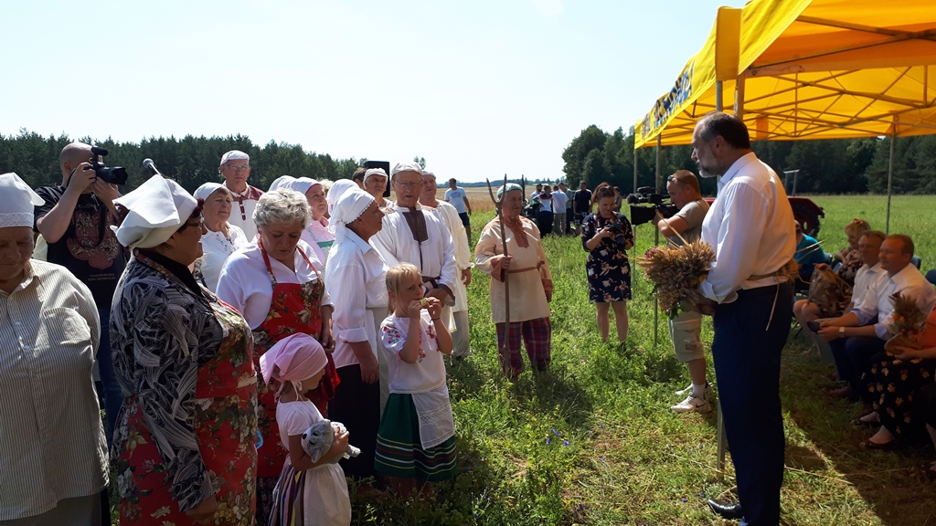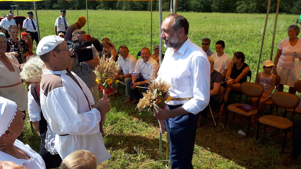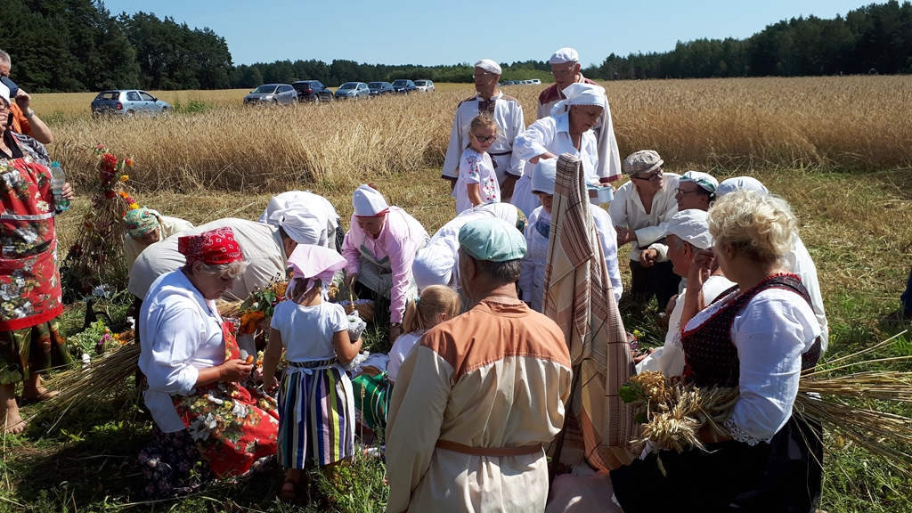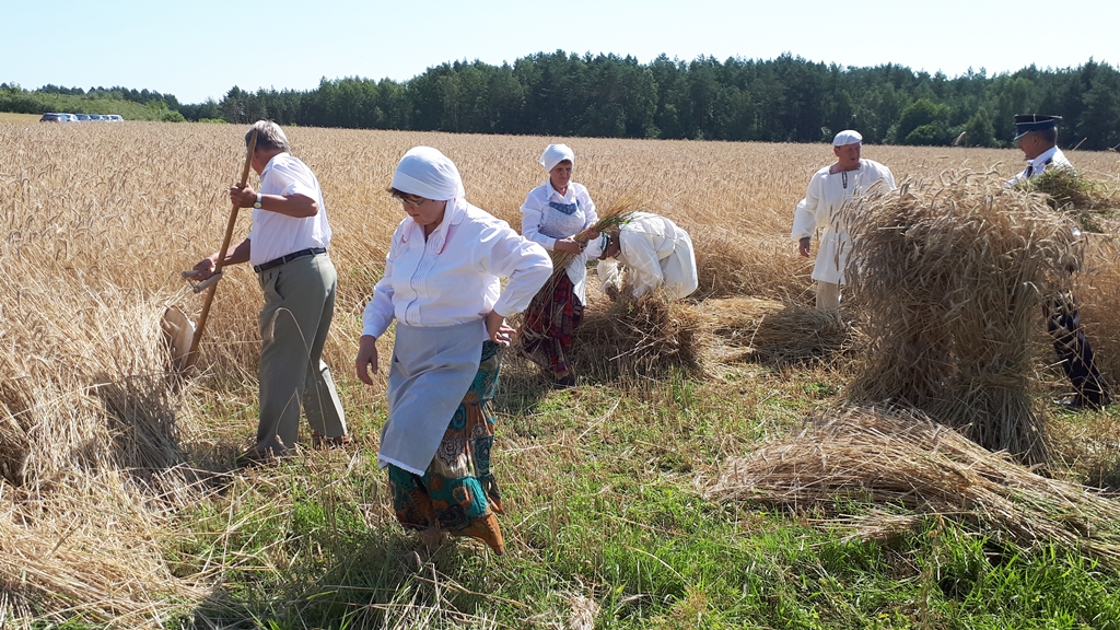 Na specjalnie przygotowanym polu można było zobaczyć żniwiarzy w tradycyjnych strojach, którzy prezentowali tzw. zażynek, czyli tradycje żniwne sprzed wielu lat. Nie zabrakło też tradycyjnych obrządków, posiłków i śpiewów.