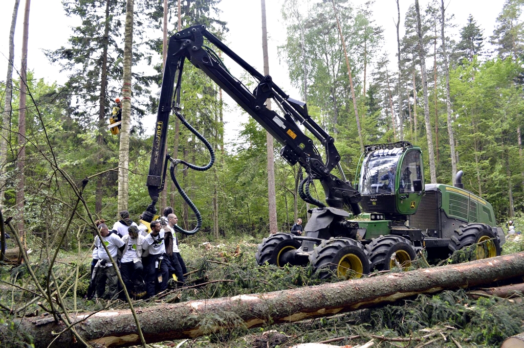 Zdaniem protestujących, drewno powinno zostać w lesie, a działania leśników są łamaniem prawa.