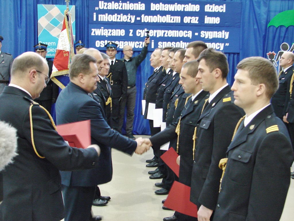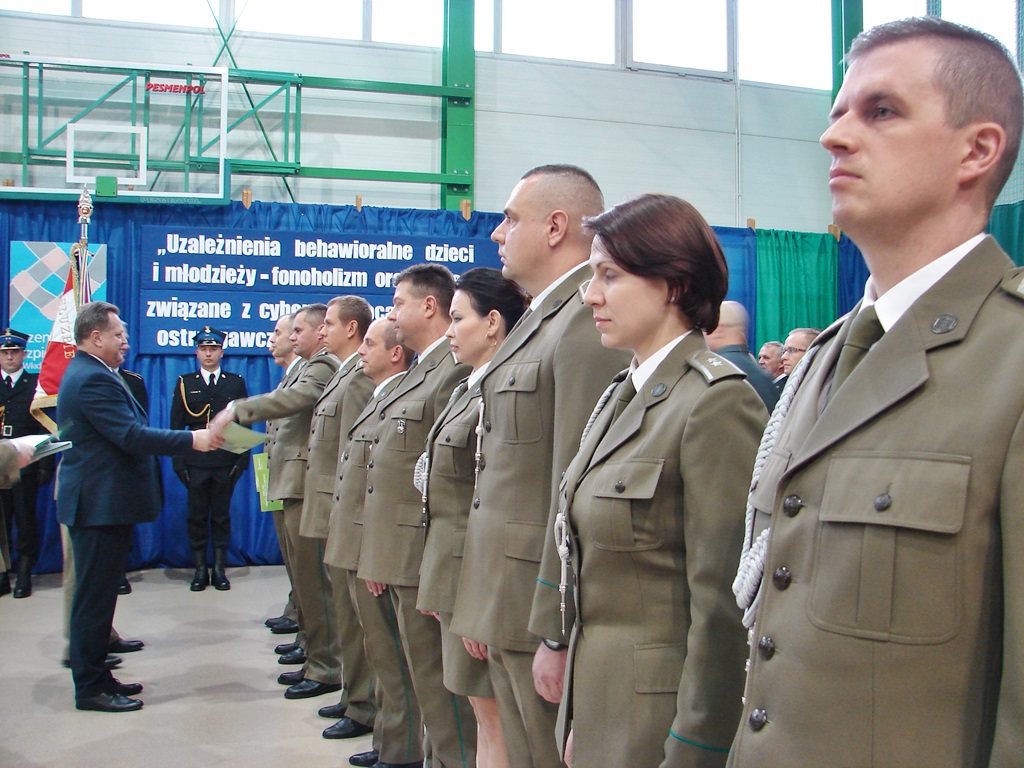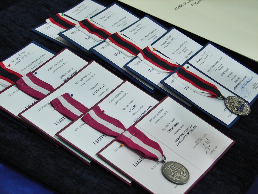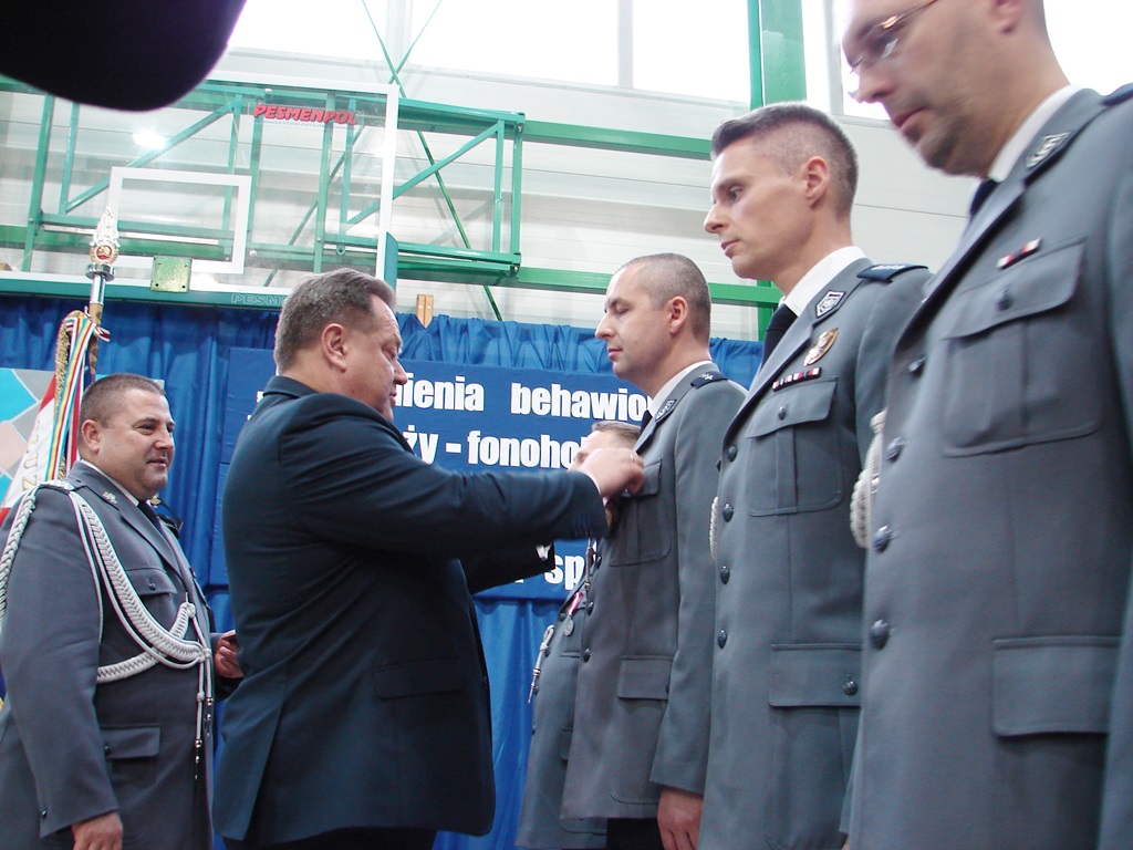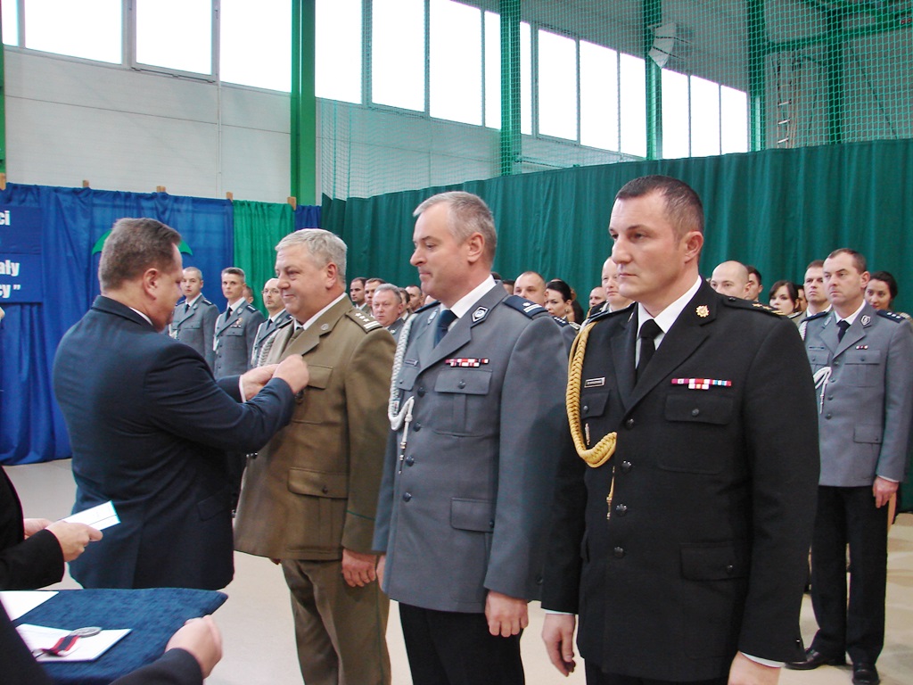 Ślubowanie nowych funkcjonariuszy było także okazją do wręczenia odznaczeń, medali, awansów i nagród kilkudziesięciu policjantom oraz strażnikom granicznym i strażakom.