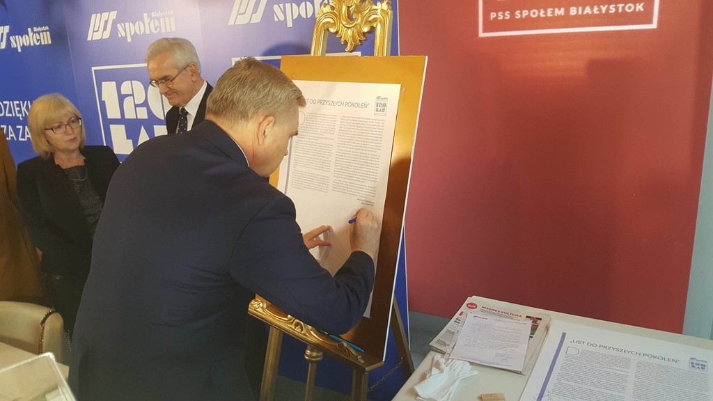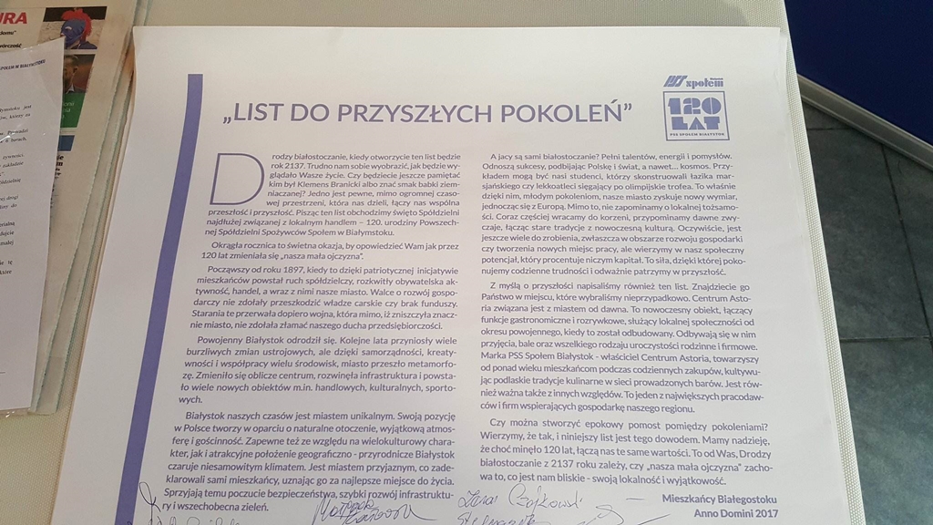 Pod listem do przyszłych pokoleń podpisali się m.in. pracownicy i klienci PSS Społem, prezydent Białegostoku i lokalni dziennikarze.