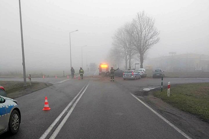 Po zderzeniu trzech samochodów zablokowana była ul. Wojska Polskiego w Grajewie - to fragment krajowej "65".