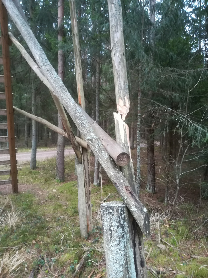 Zniszczona ambona łowiecka, źródło: http://www.bialystok.lasy.gov.pl, fot: Mirosław Panasiuk