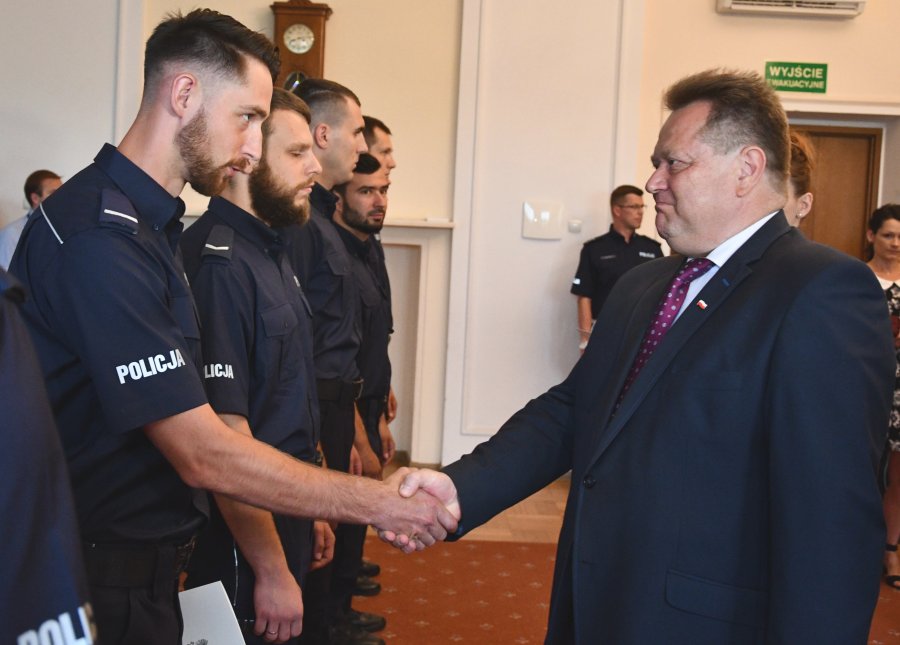 - Pamiętajcie zawsze, że pracujecie dla społeczeństwa. Poza bardzo dobrą, decyzyjną znajomością prawa, poza doświadczeniem i praktyką, trzeba także kultury, trzeba empatii, wyczucia. Jeśli społeczeństwo będzie oceniało tak wysoko, jak komisje konkursowe waszą służbę, to będziemy już pewnie szczęśliwi - zwrócił się do policjantów, podczas uroczystości, wiceminister spraw wewnętrznych i administracji Jarosław Zieliński.