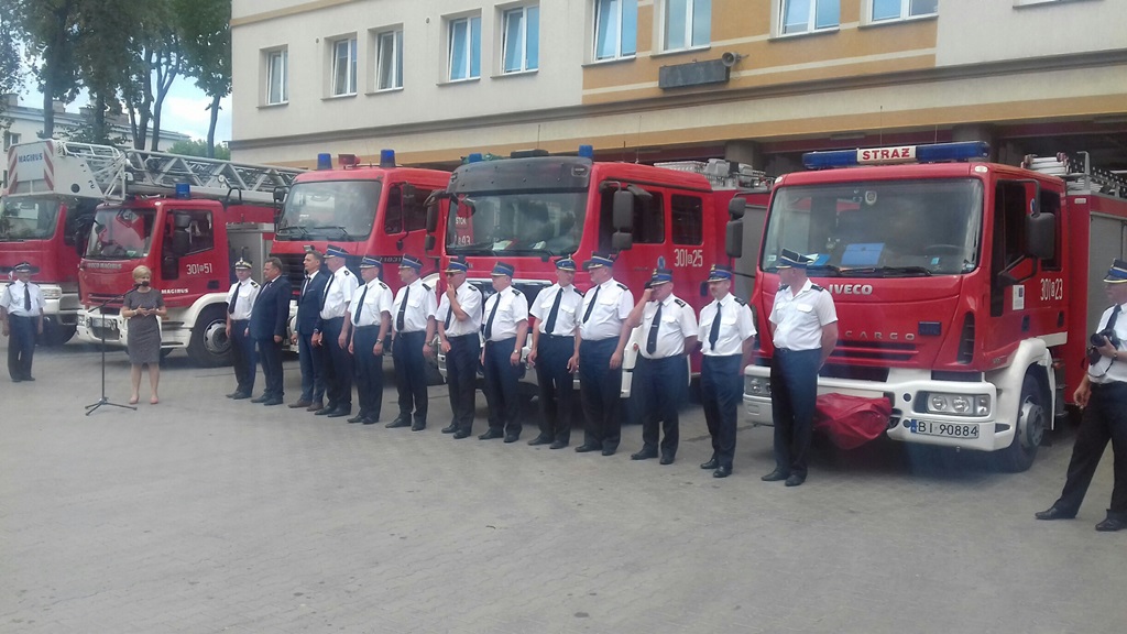 12 pojazdów ratowniczo-gaśniczych otrzymają jednostki Ochotniczej Straży Pożarnej w Podlaskiem dzięki m.in. wsparciu z MSWiA i NFOŚ - poinformowano w poniedziałek (18.06) na konferencji prasowej w Białymstoku. W całym kraju ma to być ponad 380 samochodów - zapowiedział wiceminister Jarosław Zieliński.