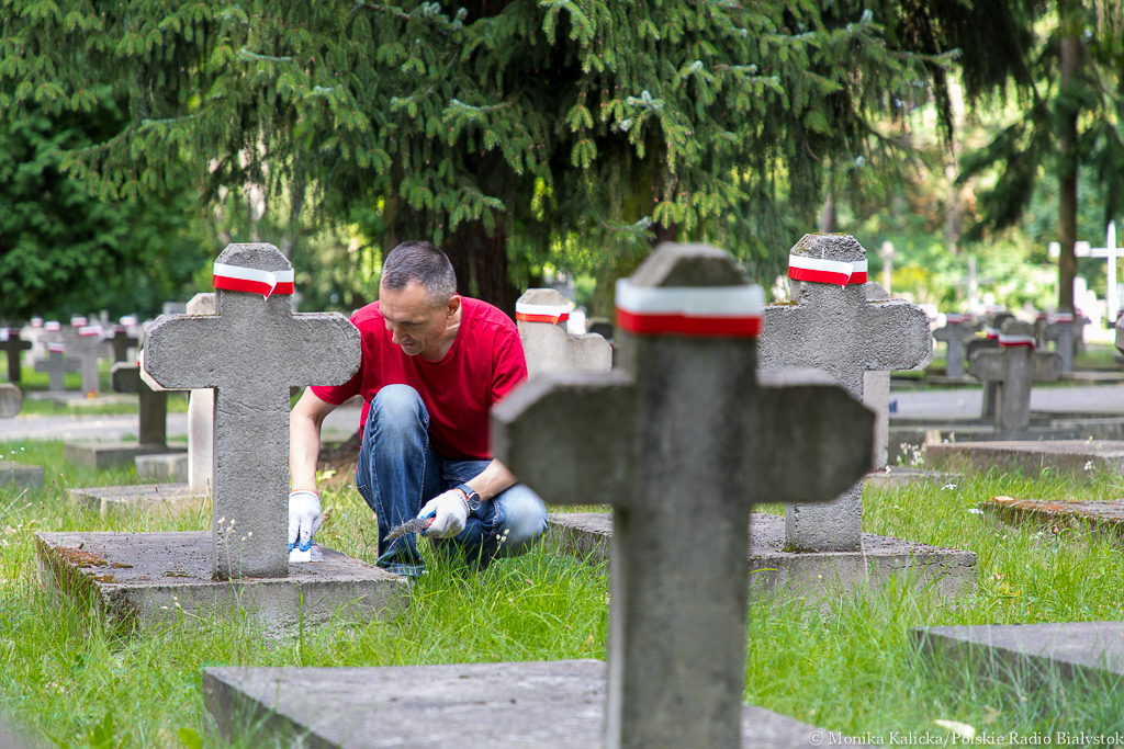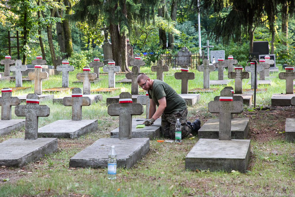 Radio Białystok | Wiadomości | Wiadomości - Mieszkańcy sprzątają groby żołnierzy poległych w bitwie białostockiej