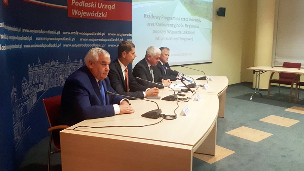 Wojewoda Paszkowski poinformował, że łącznie, w ramach dwóch programów: Rządowego Programu na Rzecz Rozwoju oraz Konkurencyjności Regionów poprzez Wsparcie Lokalnej Infrastruktury Drogowej (przyjętego w marcu) oraz rządowego Programu Rozwoju Gminnej i Powiatowej Infrastruktury Drogowej na lata 2016–2019, łącznie podlaskie samorządy dostaną w 2018 r. wsparcie w wysokości 77 mln zł.