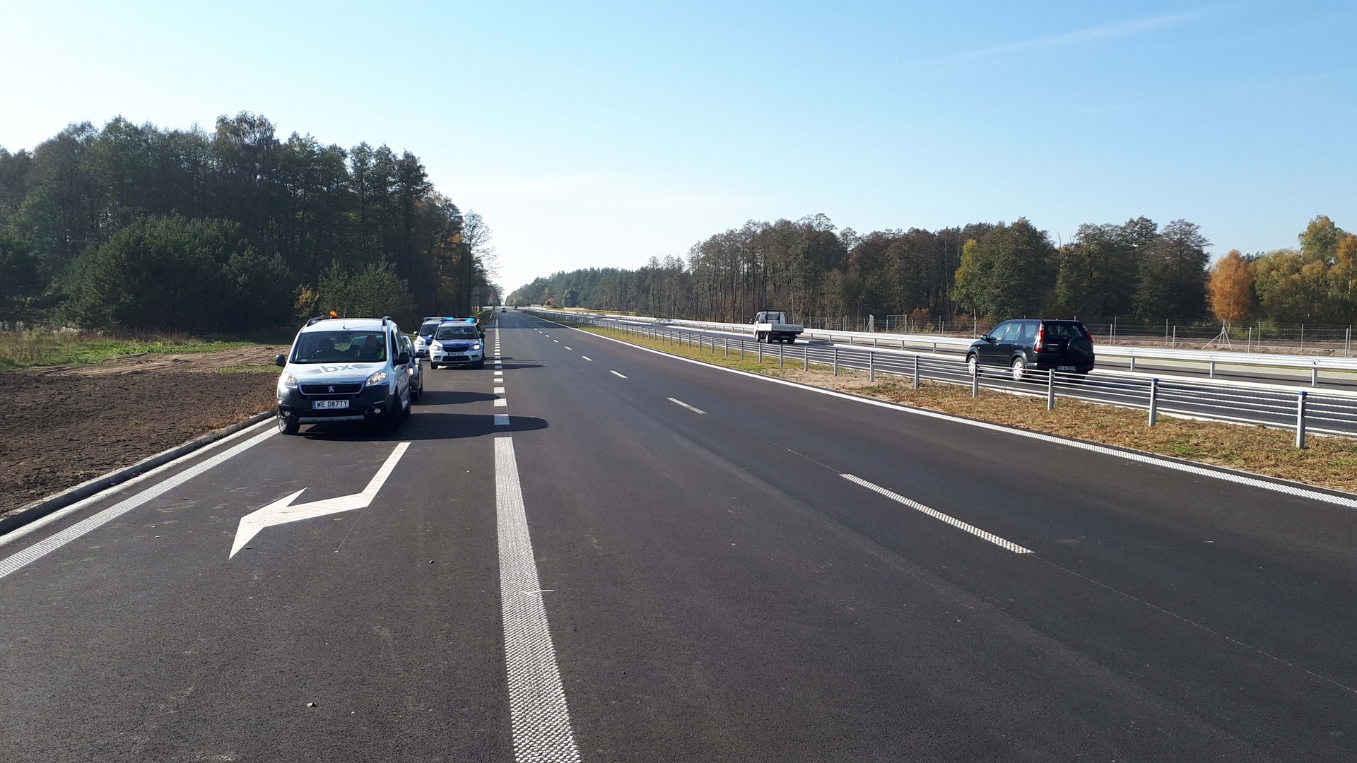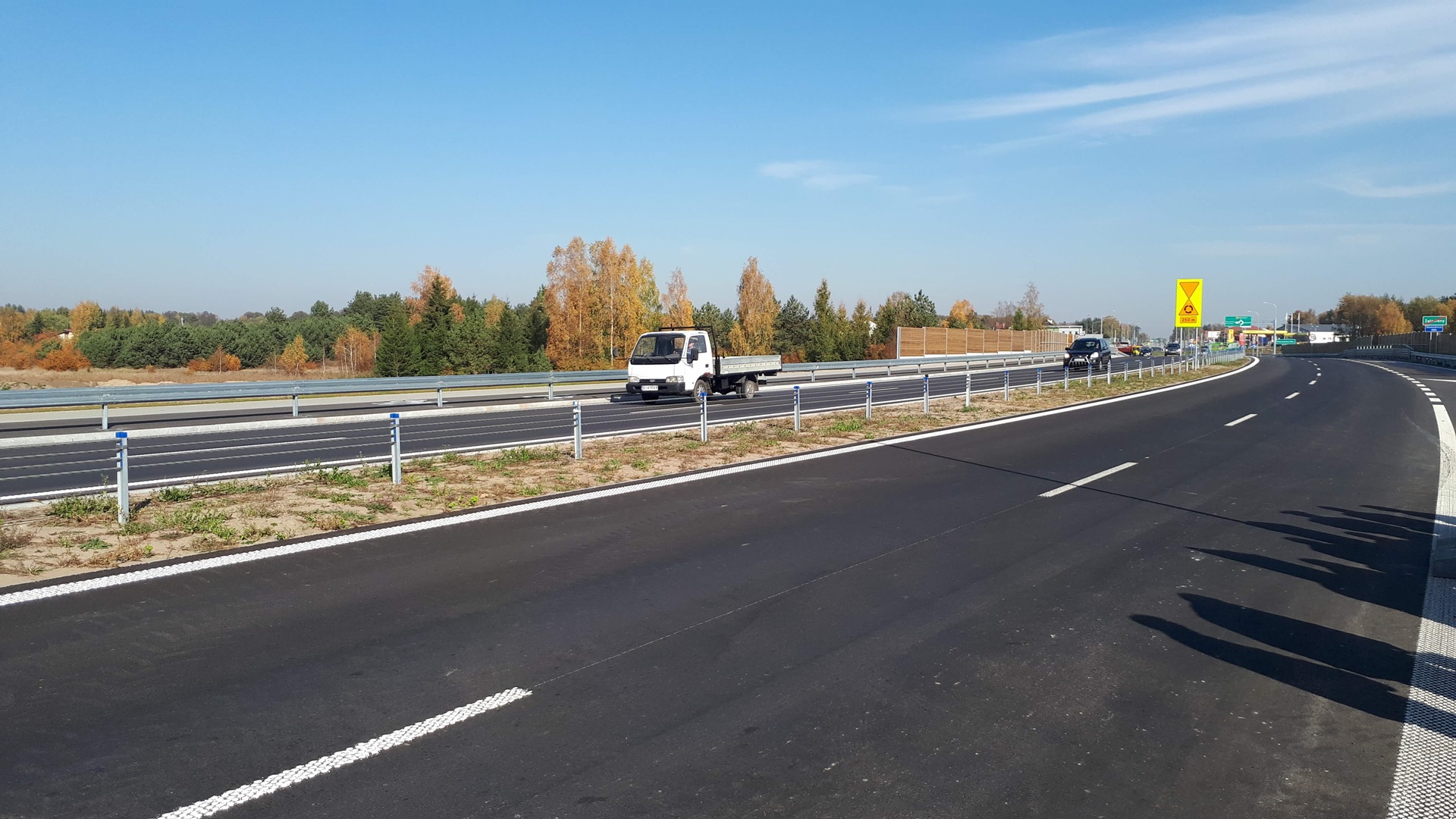 Wybudowana droga ma po dwa pasy ruchu przedzielone pasem zieleni.