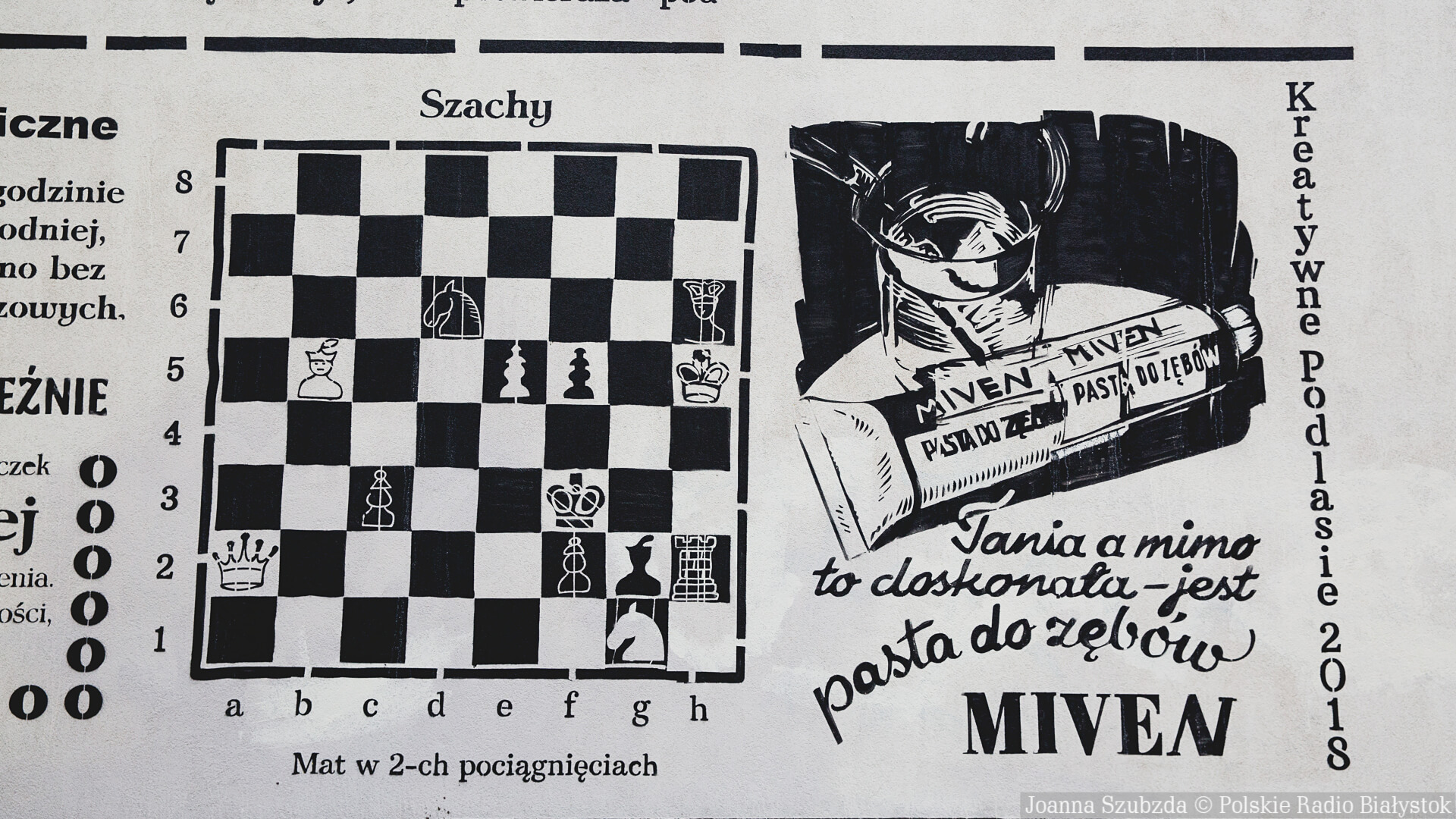 - Mural ma imitować kartę dawnej gazety z różnymi niedoskonałościami technicznymi i zabrudzeniami drukarskimi. Można zauważyć błędy maszyny drukarskiej, które występowały w tamtych czasach - informuje Damian Dworakowski ze Stowarzyszenia Kreatywne Podlasie.