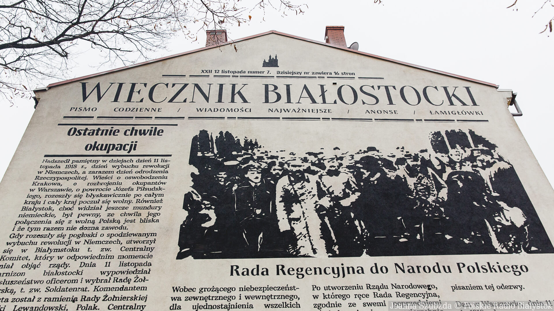 Radio Białystok | Wiadomości | Wiadomości - Wiecznik Białostocki - mural "do czytania" na 100-lecie odzyskania niepodległości [zdjęcia, wideo]