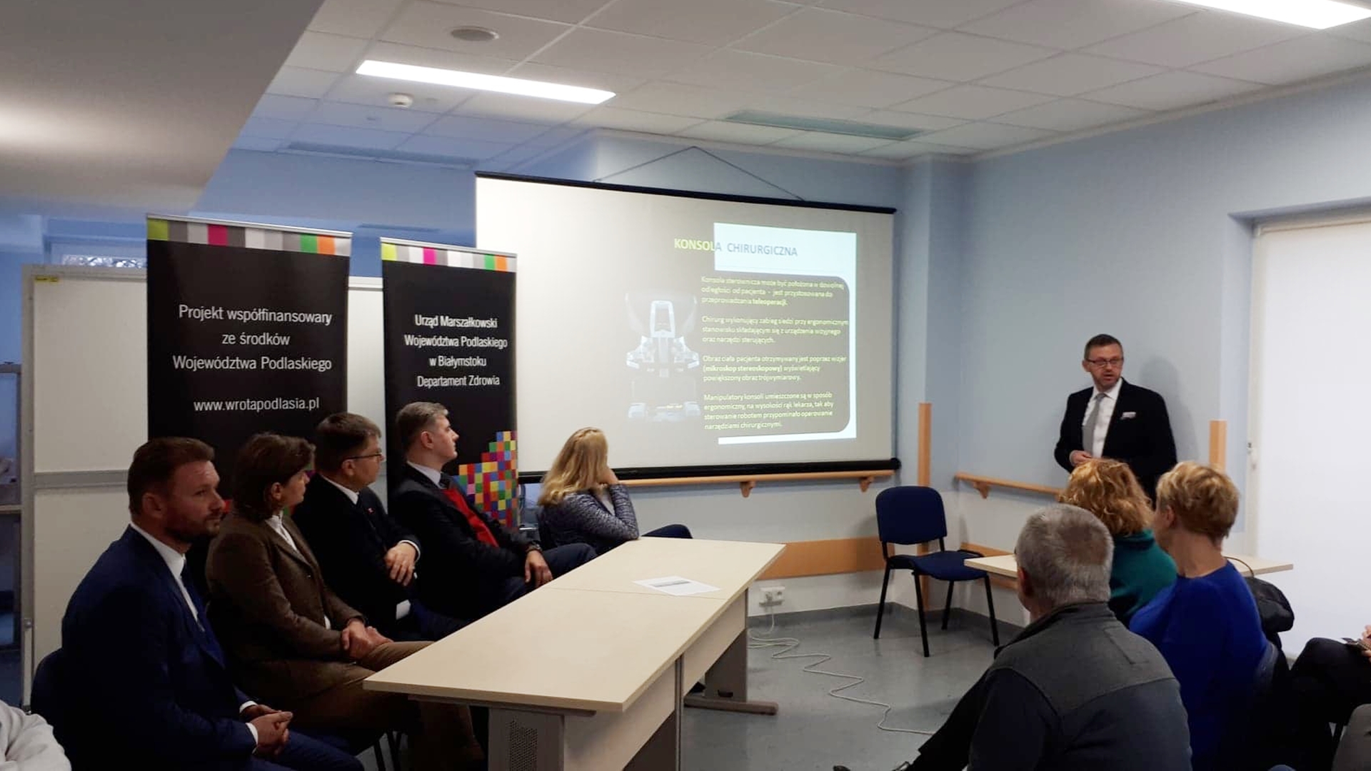 Marszałek województwa podlaskiego Jerzy Leszczyński i wicemarszałek Maciej Żywno podkreślali, że zdrowie mieszkańców to priorytet w działaniach samorządu województwa, także ważny element rozwoju regionu. Leszczyński powiedział, że zakup robota to wielka szansa dla szpitala wojewódzkiego, bo pozwoli przeprowadzać skomplikowane operacje, a mieszkańcy będą mogli korzystać z wyjątkowych możliwości, których nie było w regionie.