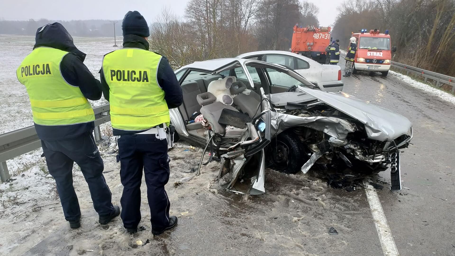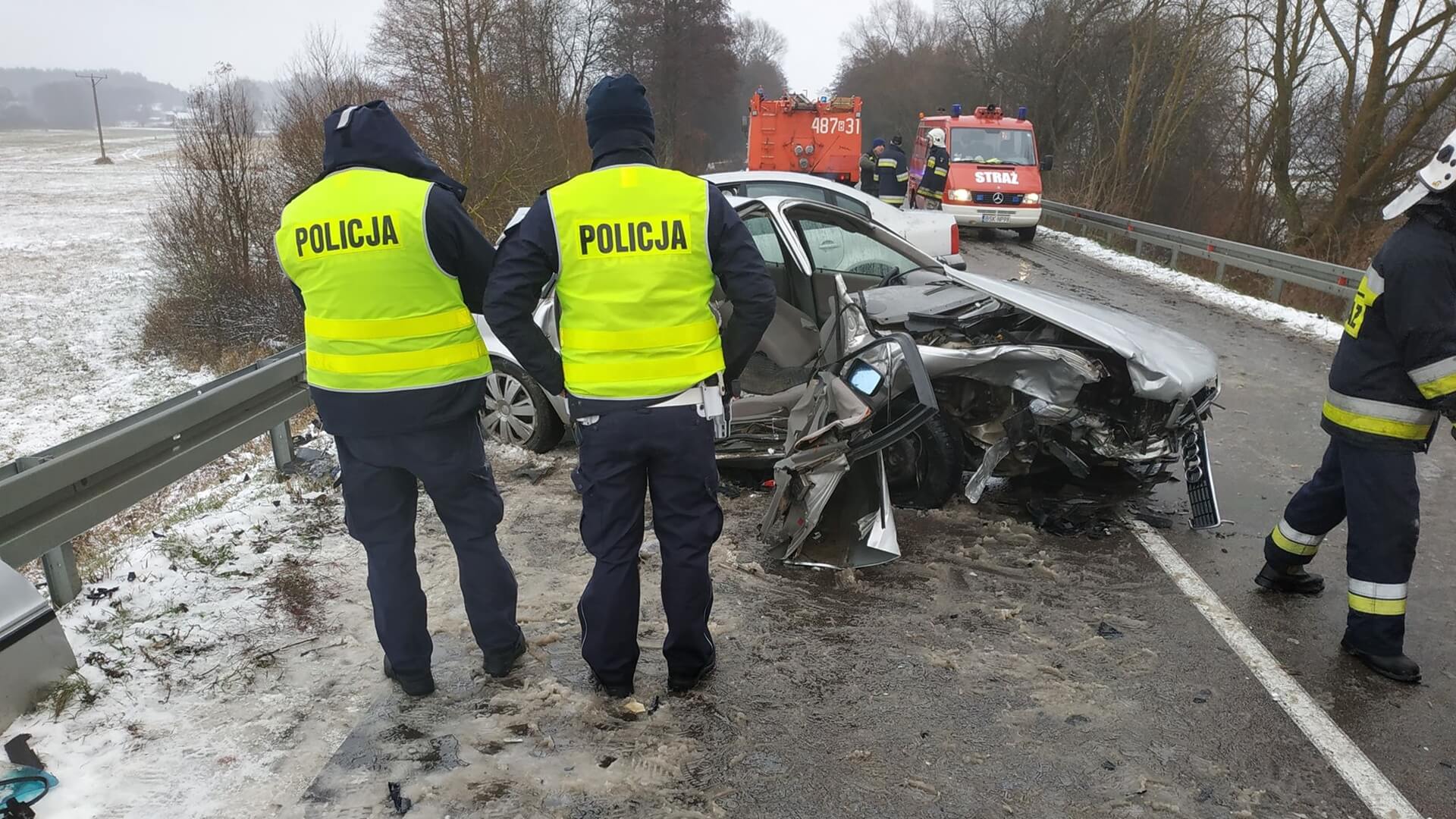 Ze wstępnych ustaleń policji wynika, że kierujący audi 64-latek na śliskiej jezdni stracił panowanie nad pojazdem, zjechał na lewą stronę. I tam jego samochód zderzył się z nadjeżdżającym z naprzeciwka volkswagenem.