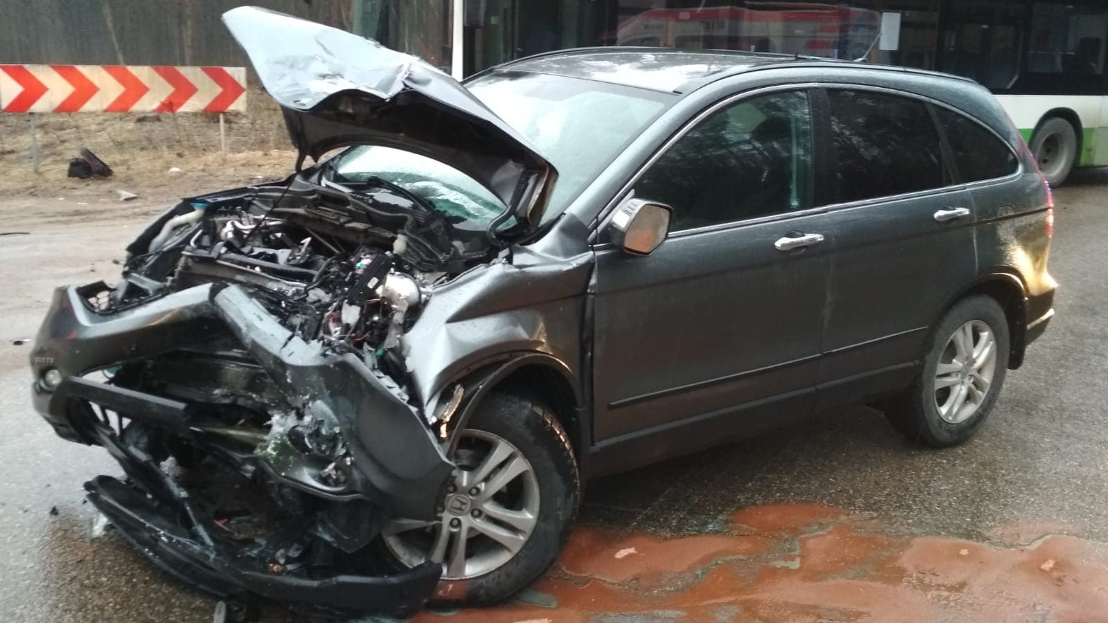 Na przedłużeniu ul. 42 Pułku Piechoty, w okolicach skrętu do miejscowości Sowlany kierujący hondą na łuku drogi nie dostosował prędkości do warunków na drodze i czołowo zderzył się z jadącym z naprzeciwka autobusem komunikacji miejskiej linii 105.