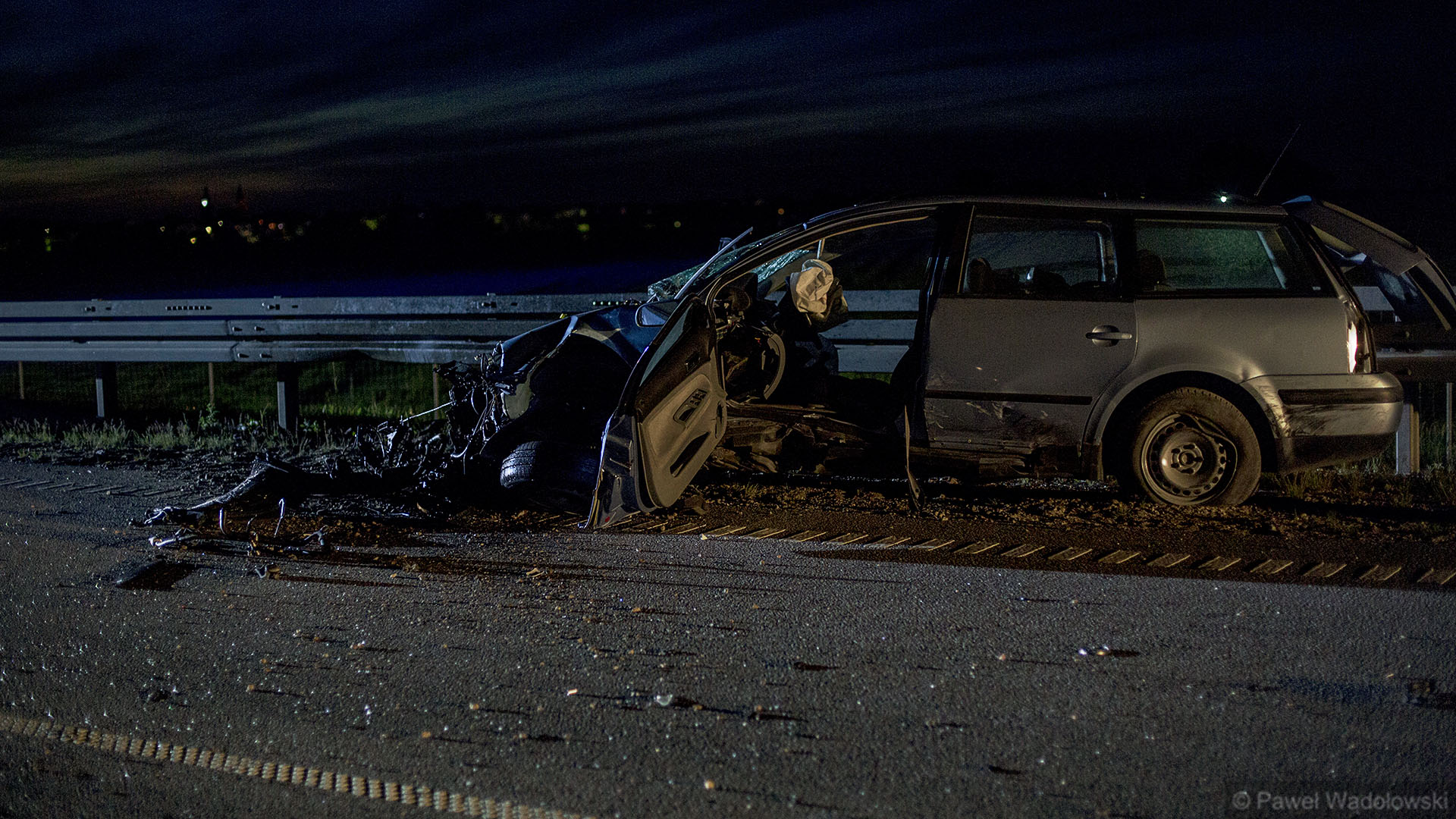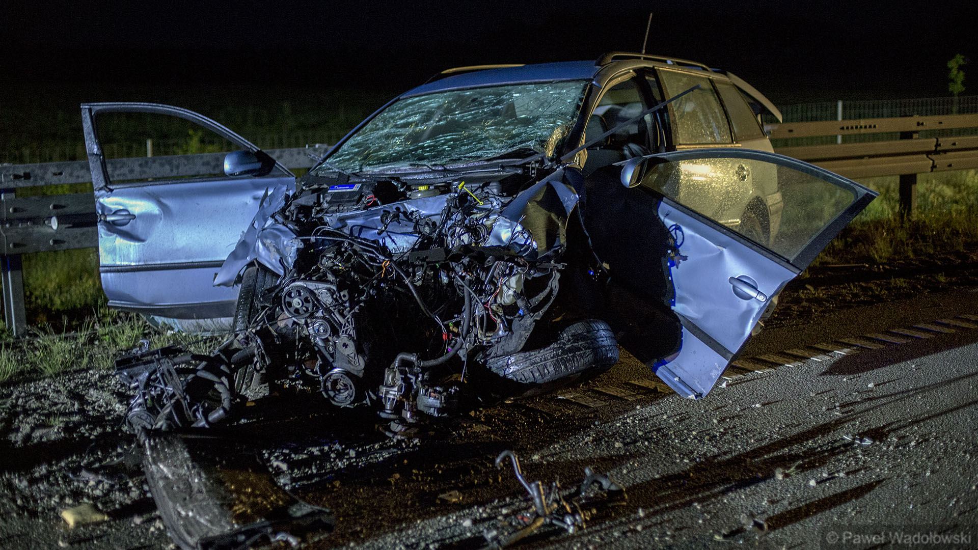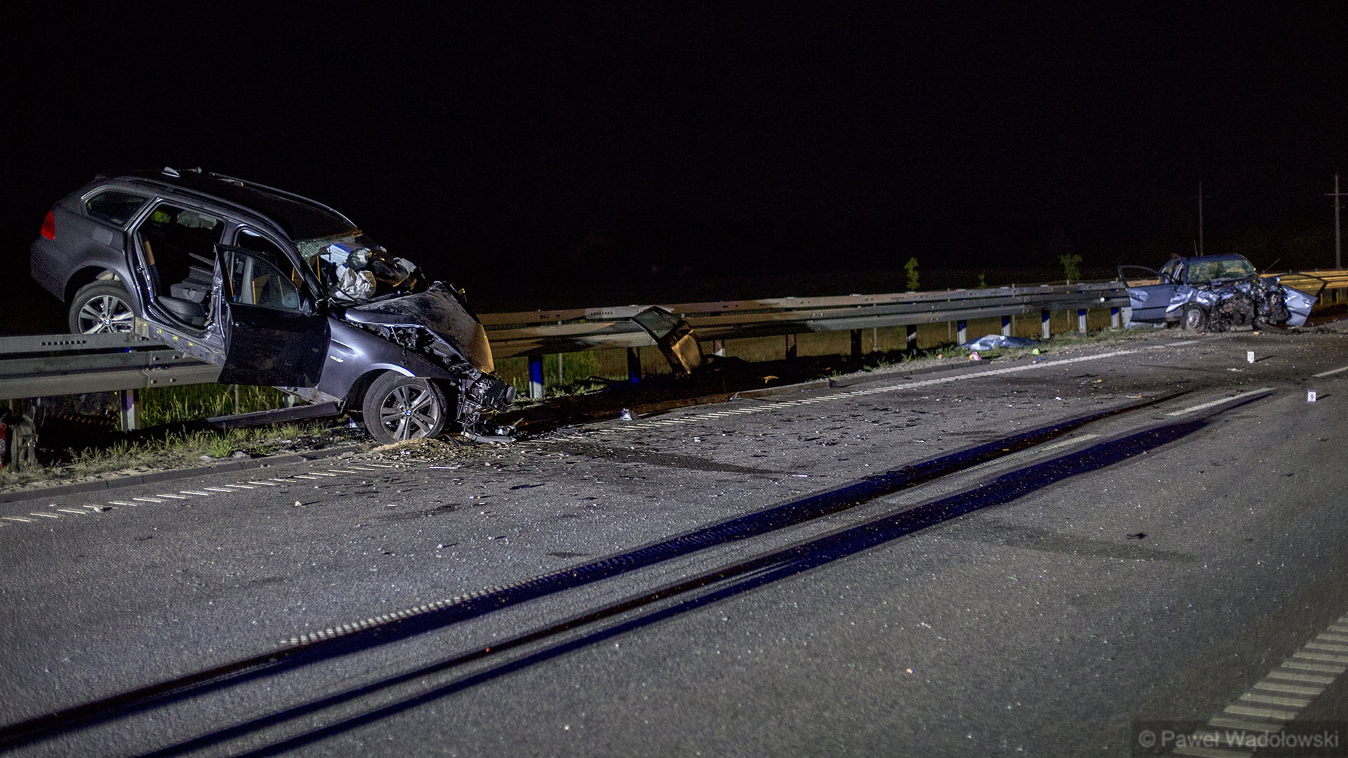 Jak wynika ze wstępnych ustaleń policji, kierowca auta marki Kia zaczął manewr wyprzedzania i nie chcąc doprowadzić do czołowego zderzenia z samochodem jadącym z przecwinego kierunku gwałtownie zahamował i zjechał na prawą stronę. Doprowadził w ten sposób do zderzenia z jadącym w tym samym kierunku Volkwagenem. Kierowca tego auta stracił nad nim panowanie i zjechał na przeciwległy pas zderzając się czołowo z BMW.