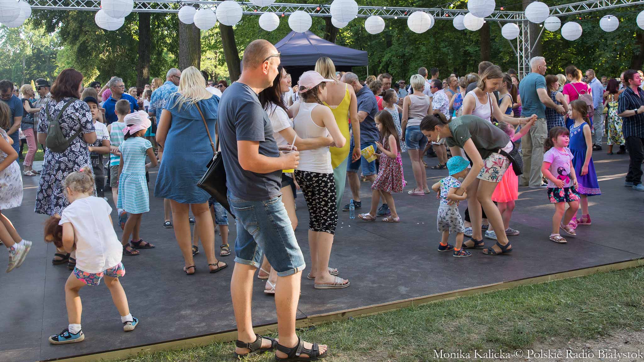 W potańcówce wzięły udział rodziny - zarówno rodzice z dziećmi, jak i babcie i dziadkowie z wnukami. Na parkiecie najodważniej wirowały maluchy, nie krępowali się też seniorzy wykorzystując możliwość potańczenia przy muzyce na żywo. Tancerzom grał zespół Whitestok. W ogrodach Pałacu Branickich oprócz możliwości potańczenia, można też było skorzystać z piknikowania na trawie lub kocu.