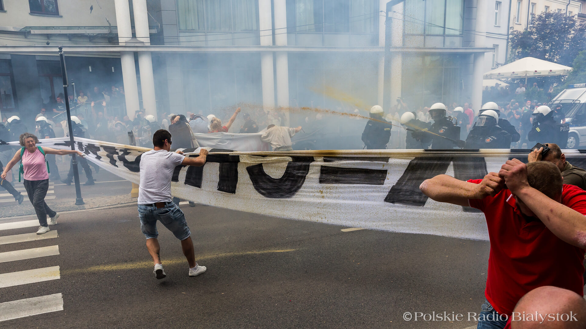Opisując zdarzenie, do którego doszło na wysokości białostockiej katedry, mówił, że w stronę policji i uczestników poleciały kamienie, kostka brukowa i butelki. - Zmuszeni byliśmy natychmiast zareagować, odpowiedzieć. Policjanci używali zarówno granatów hukowych, używali miotaczy pieprzu, siły fizycznej - powiedział Tomasz Krupa. Doszło też do zatrzymań.