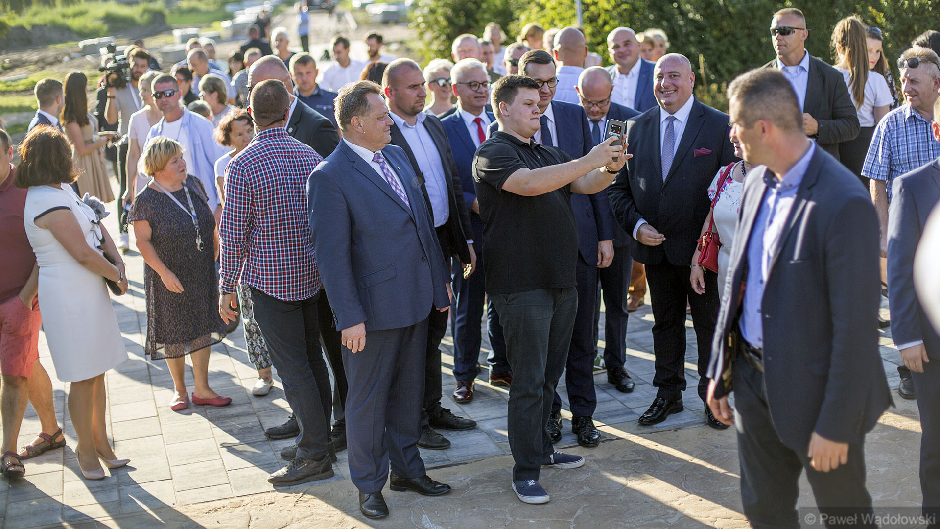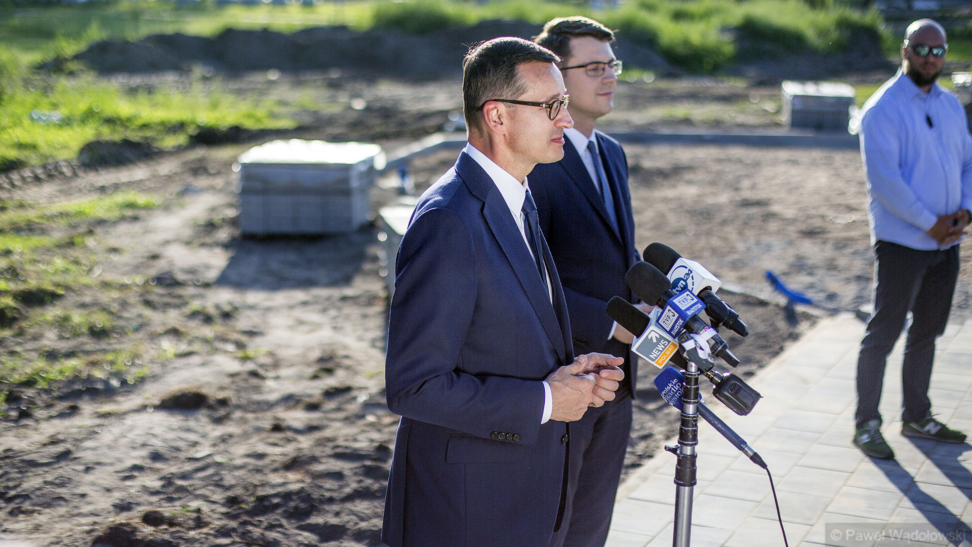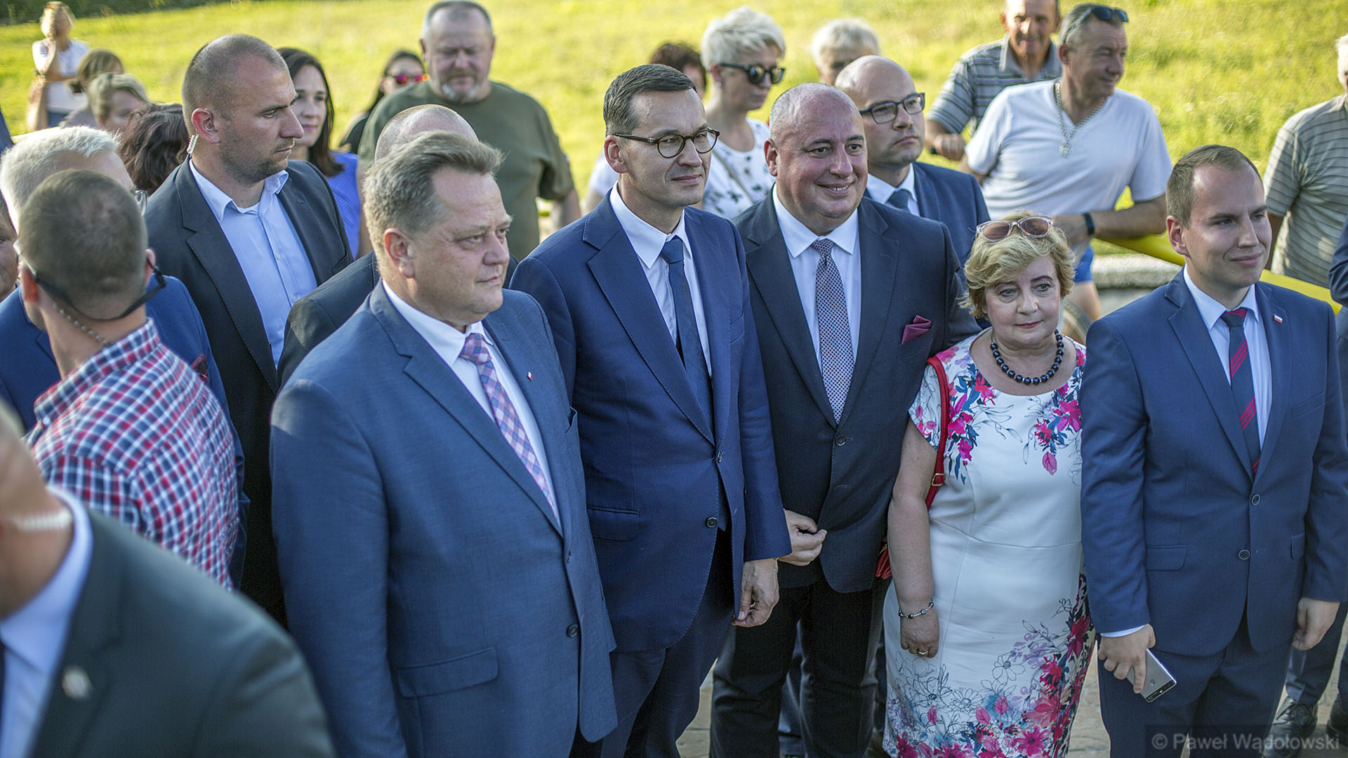 W Grajewie premierowi towarzyszyli m.in. pochodzący z Grajewa wiceminister cyfryzacji Adam Andruszkiewicz, burmistrz miasta Dariusz Latarowski, marszałek województwa podlaskiego Artur Kosicki oraz wiceminister SWiA Jarosław Zieliński.
