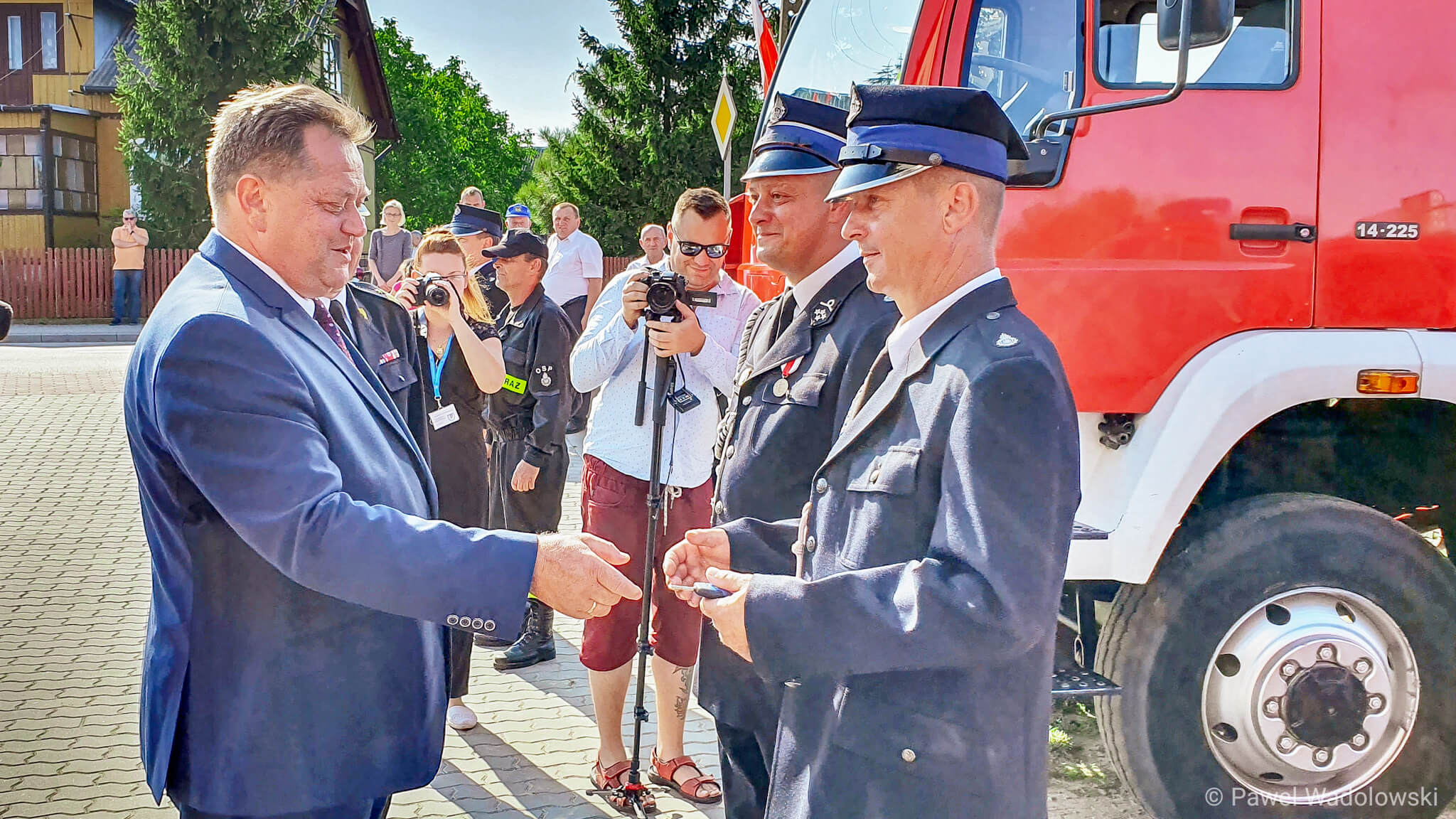 - Przekazaliśmy samochód używany z Państwowej Straży Pożarnej do jednostki z Jabłoni Kościelnej. A z kolei inny lekki samochód ratowniczo-gaśniczy używany w tej jednostce dotąd powędrował do jednostki sąsiedniej OSP w Hodyszewie. Ale kupujemy też nowe samochody. Ich rekordową liczbę kupimy w tym roku, bo w skali kraju 480 samochodów, a dla województwa podlaskiego również rekordową liczbę 31 samochodów ratowniczo-gaśniczych - poinformował Jarosław Zieliński.