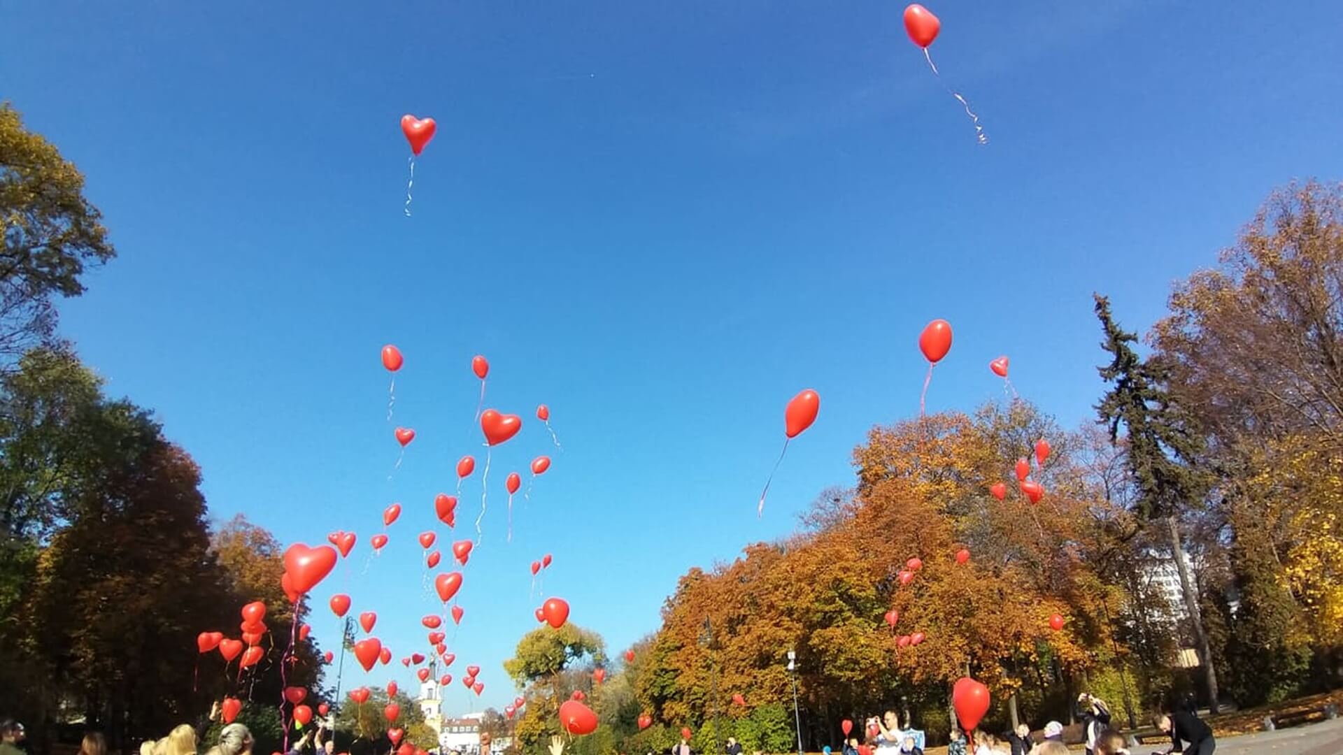 Na zakończenie uczestnicy poniedziałkowej akcji wypuścili w niebo ponad 100 czerwonych balonów, symbolu choroby.