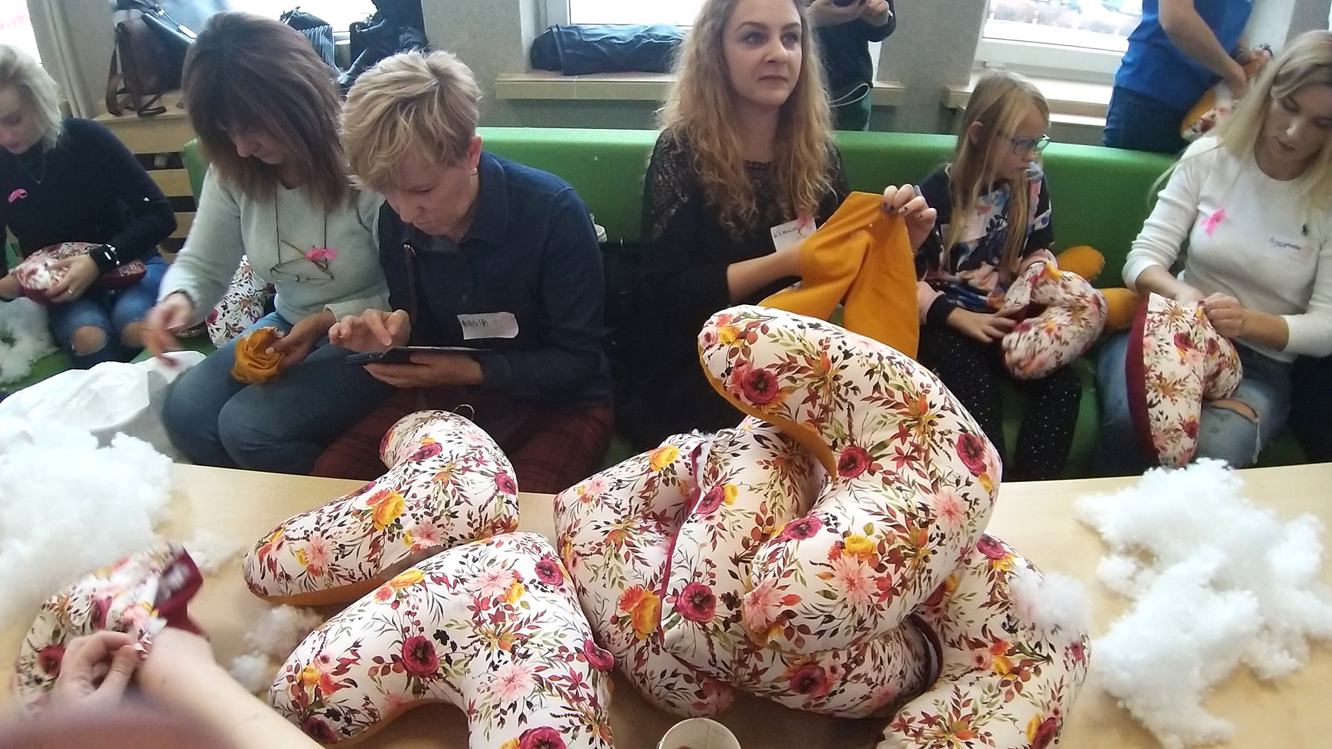Materiał i wycięte już formy serc przygotowała i dostarczyła na akcję jedna z lokalnych firm. Zadaniem wolontariuszy było zszycie i wypełnienie serc by utworzyły poduszki. Uczestniczki mówiły, że to nie jest szycie zwykłych poduszek, to - jak podkreślały - "szycie, które ma sens".