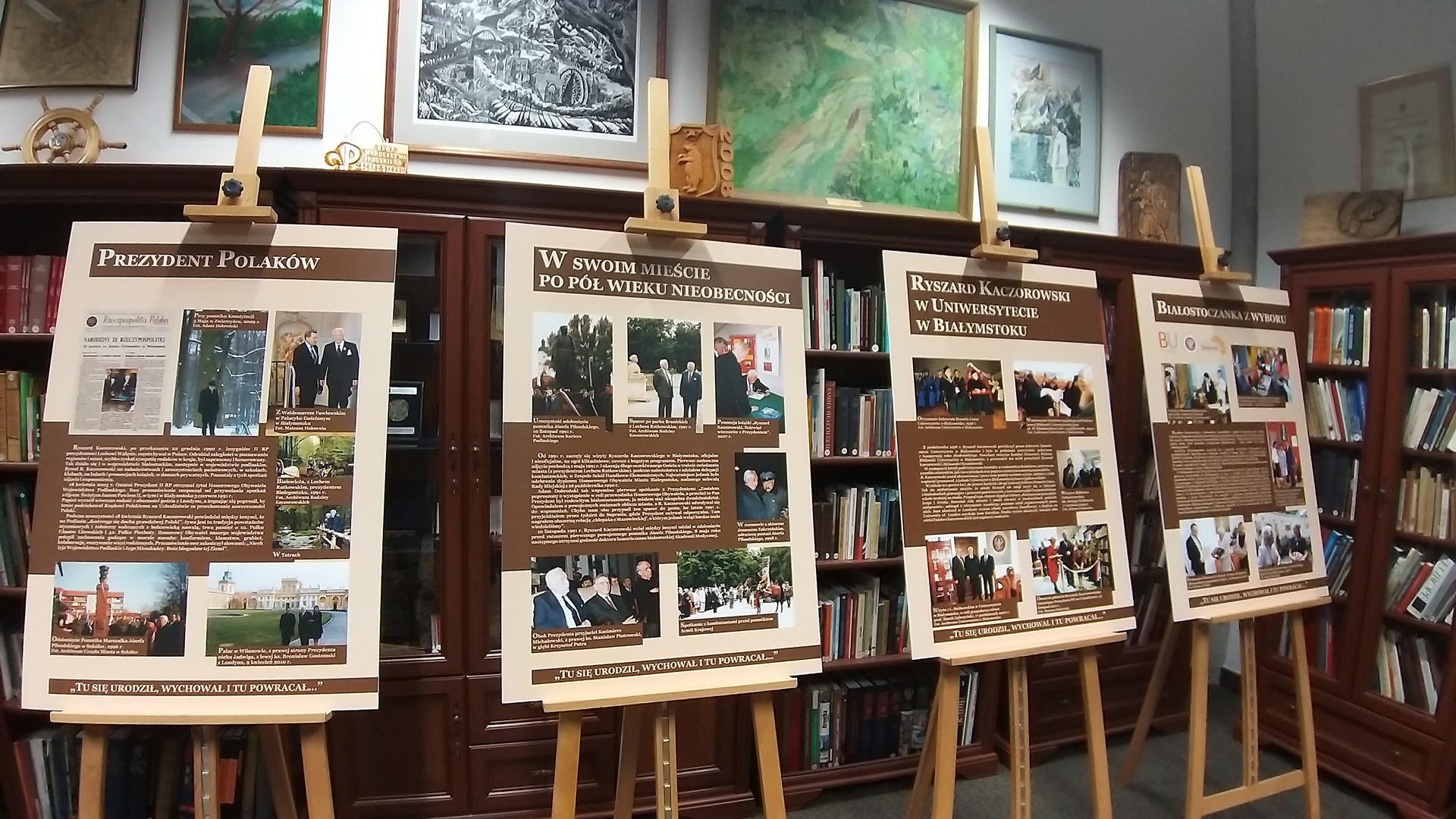 Wystawę otwarto na UwB, gdzie znajduje się gabinet Ryszarda Kaczorowskiego, w którym jest zbiór pamiątek, osobistych rzeczy oraz książek przekazanych uczelni przez prezydenta i jego żonę Karolinę.