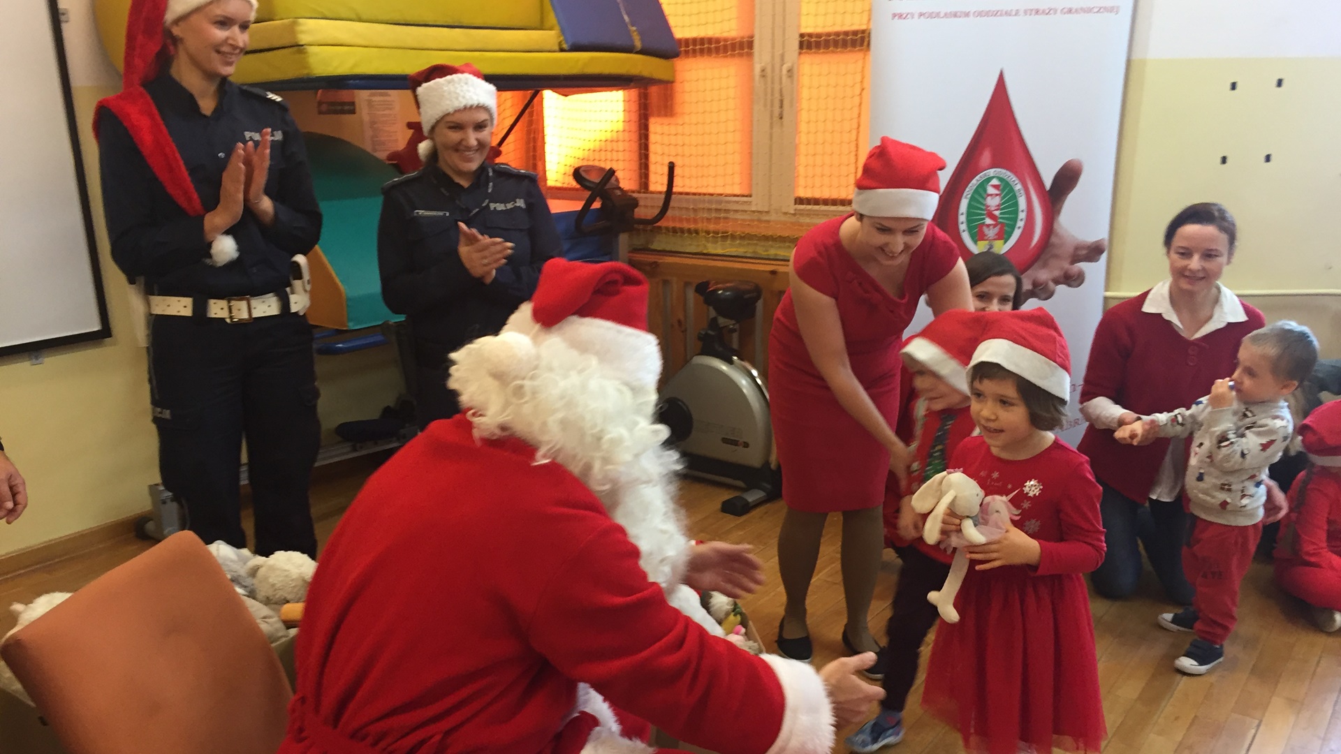 To efekt akcji "Mikołajki z mundurem" przeprowadzonej przez Kluby Honorowych Dawców Krwi Polskiego Czerwonego Krzyża przy Podlaskim Oddziale Straży Granicznej oraz przy Komendzie Miejskiej Policji w Białymstoku. Prezenty wręczał dzieciom Mikołaj. Jego wizytę poprzedził występ gimnastyczek artystycznych z grupy Brawo.
