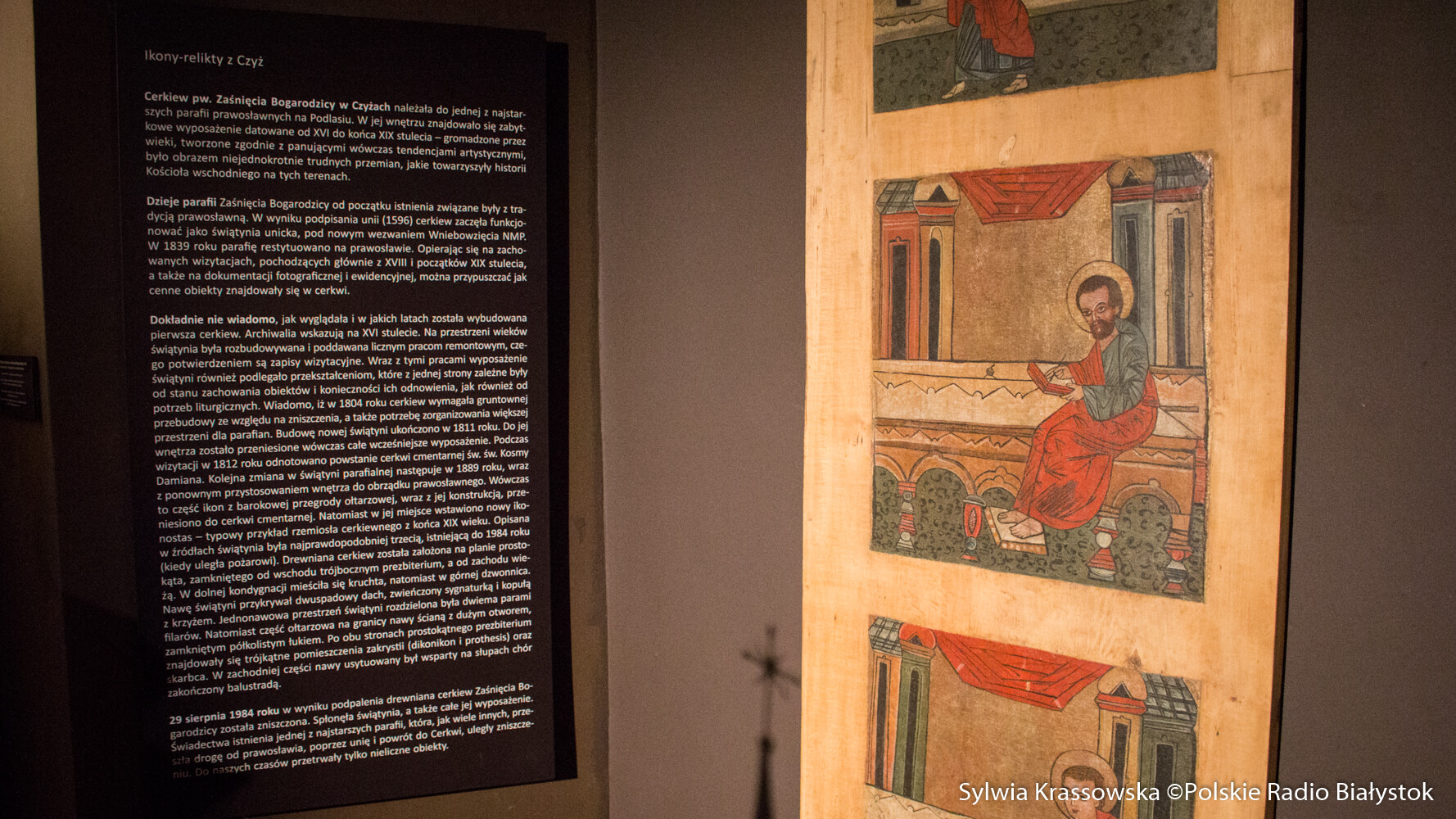 - powiedziała Zalewska. Dodała, że prezentowane na wystawie ikony to ikony-relikty, jedyne zachowane ikony z nieistniejących już podlaskich świątyń w Supraślu i Czyżach.
