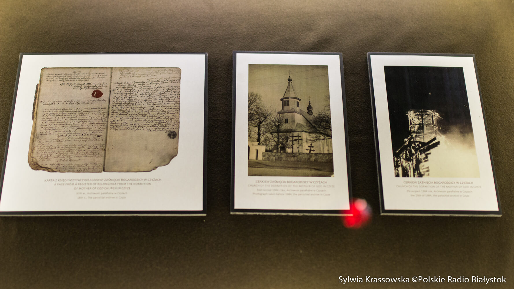 Drugim zespołem ikon na wystawie są ikony pochodzące z nieistniejącej drewnianej cerkwi w Czyżach pw. Zaśnięcia NMP. Jak mówiła Zalewska, zespół ikon z Czyż jest unikatowym dziedzictwem artystycznym związanym z dziejami Cerkwi na Podlasiu. "Parafia w Czyżach funkcjonująca jako jedna z najstarszych na tych terenach przeszła drogę historyczną poprzez prawosławie, przyjęcie unii i restytucję prawosławia" - dodała. Na wystawie będzie można zobaczyć zachowane ikony-relikty z XVI, XVII i XVIII wieku.