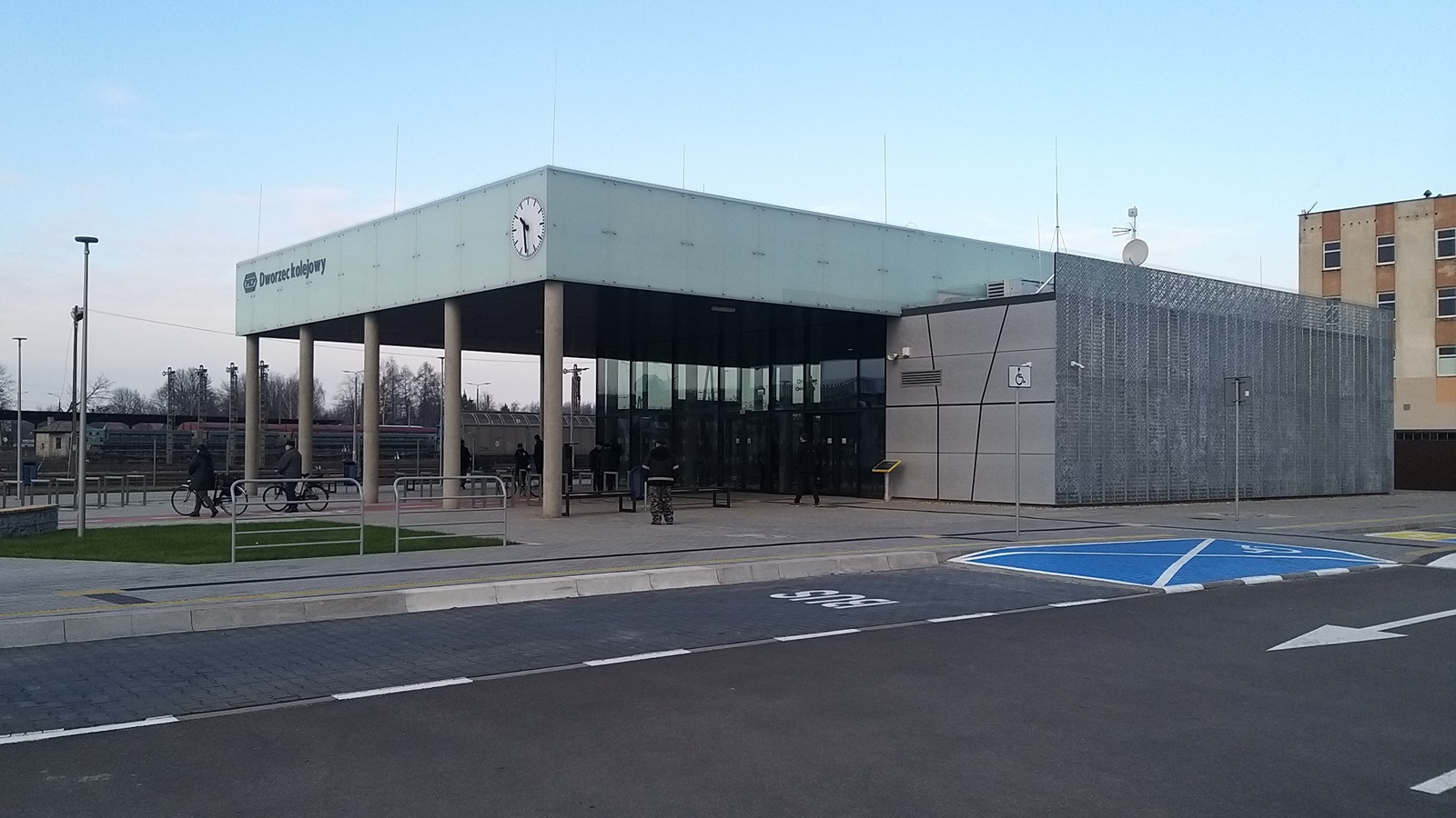 W ramach inwestycji zagospodarowano również teren przyległy do budynku dworca: powstał parking, wiata dla rowerów, stacja naprawy rowerów.