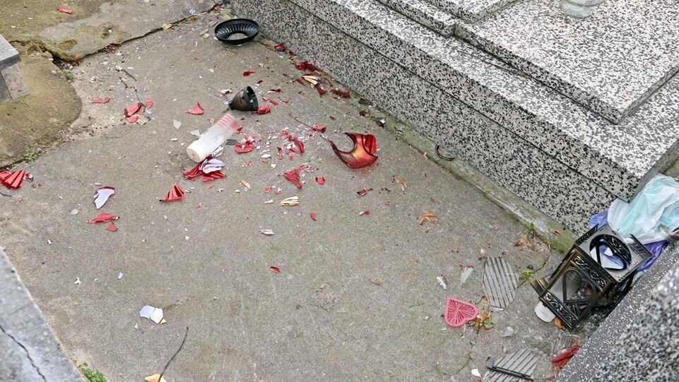 Porozrzucane znicze, połamane i wyrzucone z wazonów kwiaty. Tak wyglądał łomżyński cmentarz przy ul. Kopernika po wizycie pijanych wandali.