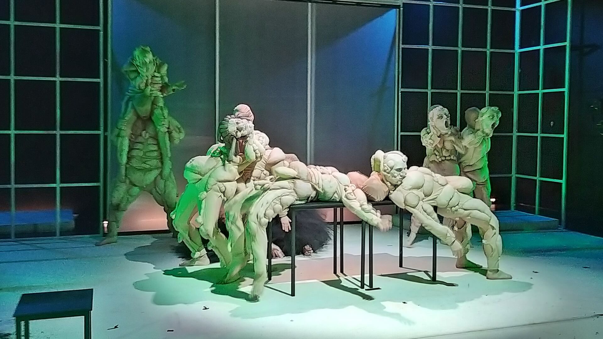 W przedstawieniu studenci wykorzystują elementy kultury hip-hopowej, pełen ekspresji ruch sceniczny, lalki, maski.