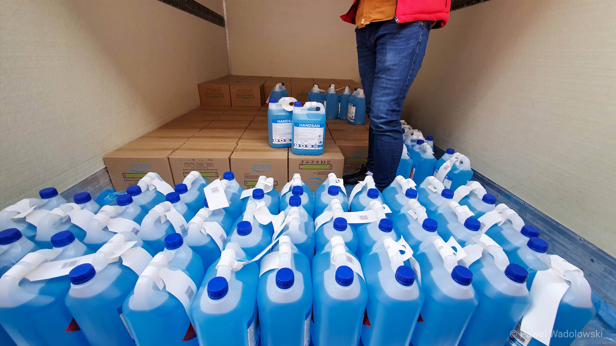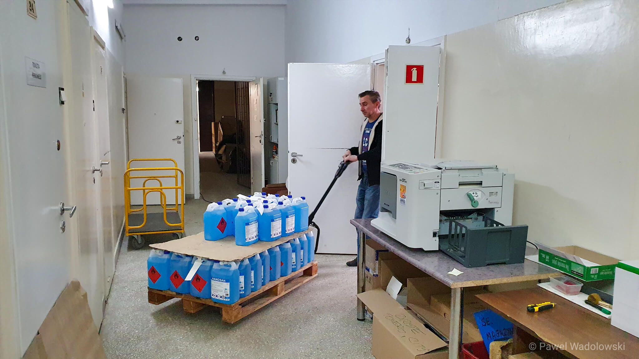 Jak mówi - prowadzi firmę, która zajmuje się przetwórstwem żywności i zawsze ma zapas tego typu wyposażenia. Część specjalnie dokupił kiedy usłyszał, że brakuje wyposażenia w łomżyńskiej placówce.
