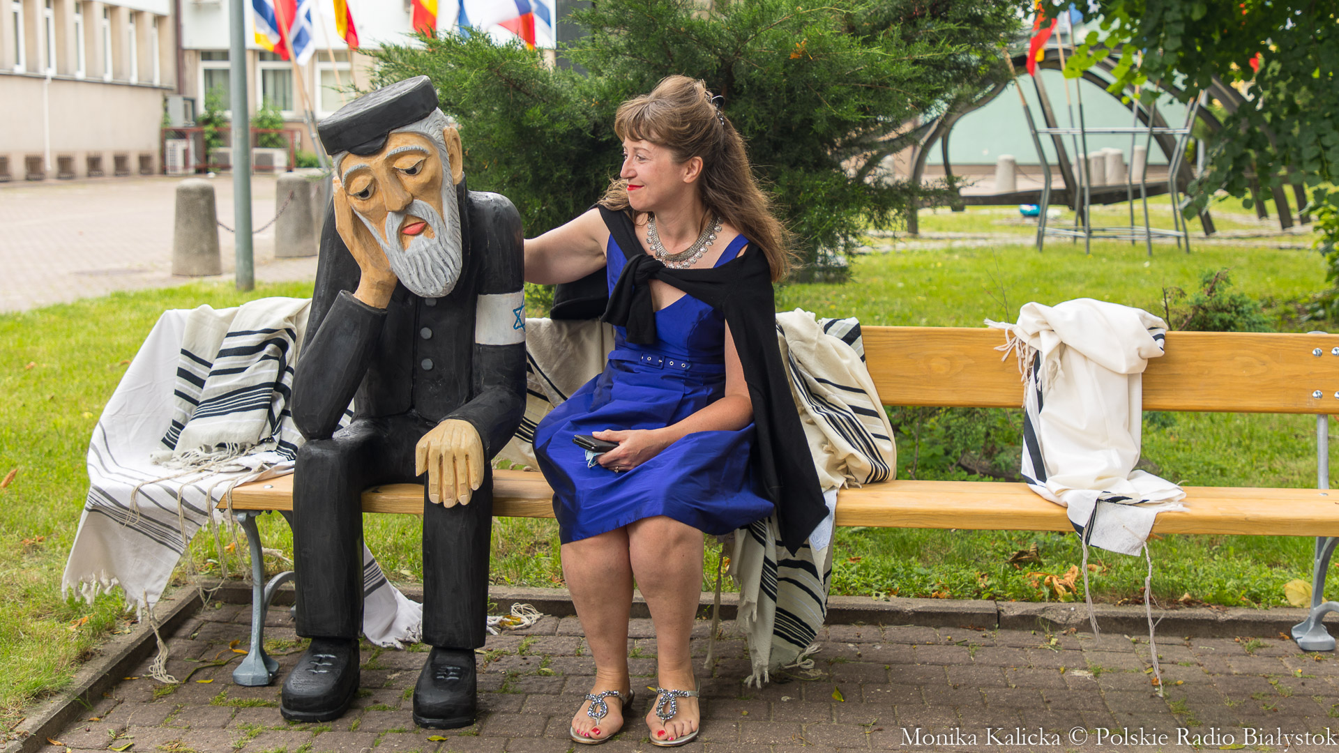 W czasie uroczystości odsłonięto rzeźbę Żyda, który samotnie siedzi na drewnianej ławce na skwerze przy pomniku. To czasowa instalacja artystyczna (w sobotę była eksponowana przez dwie godziny), której inspiracją jest przedwojenne zdjęcie.