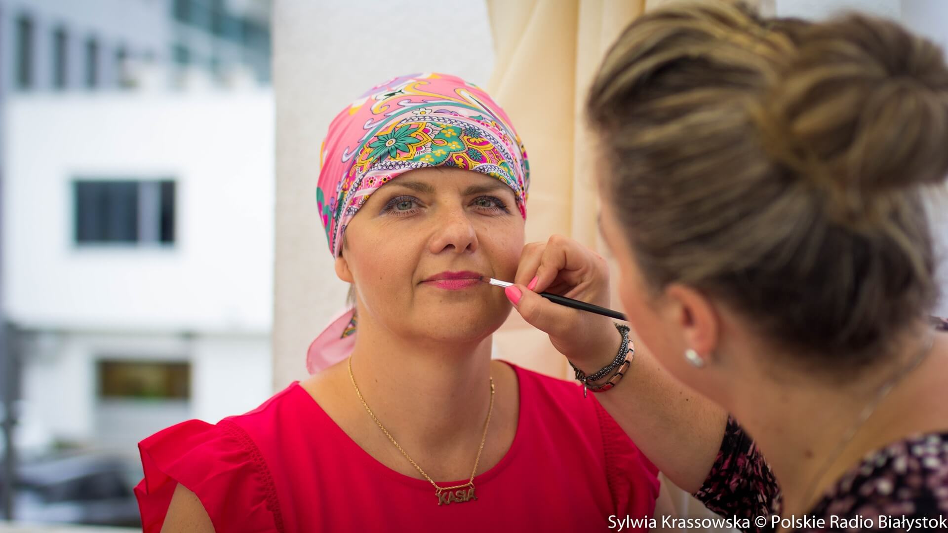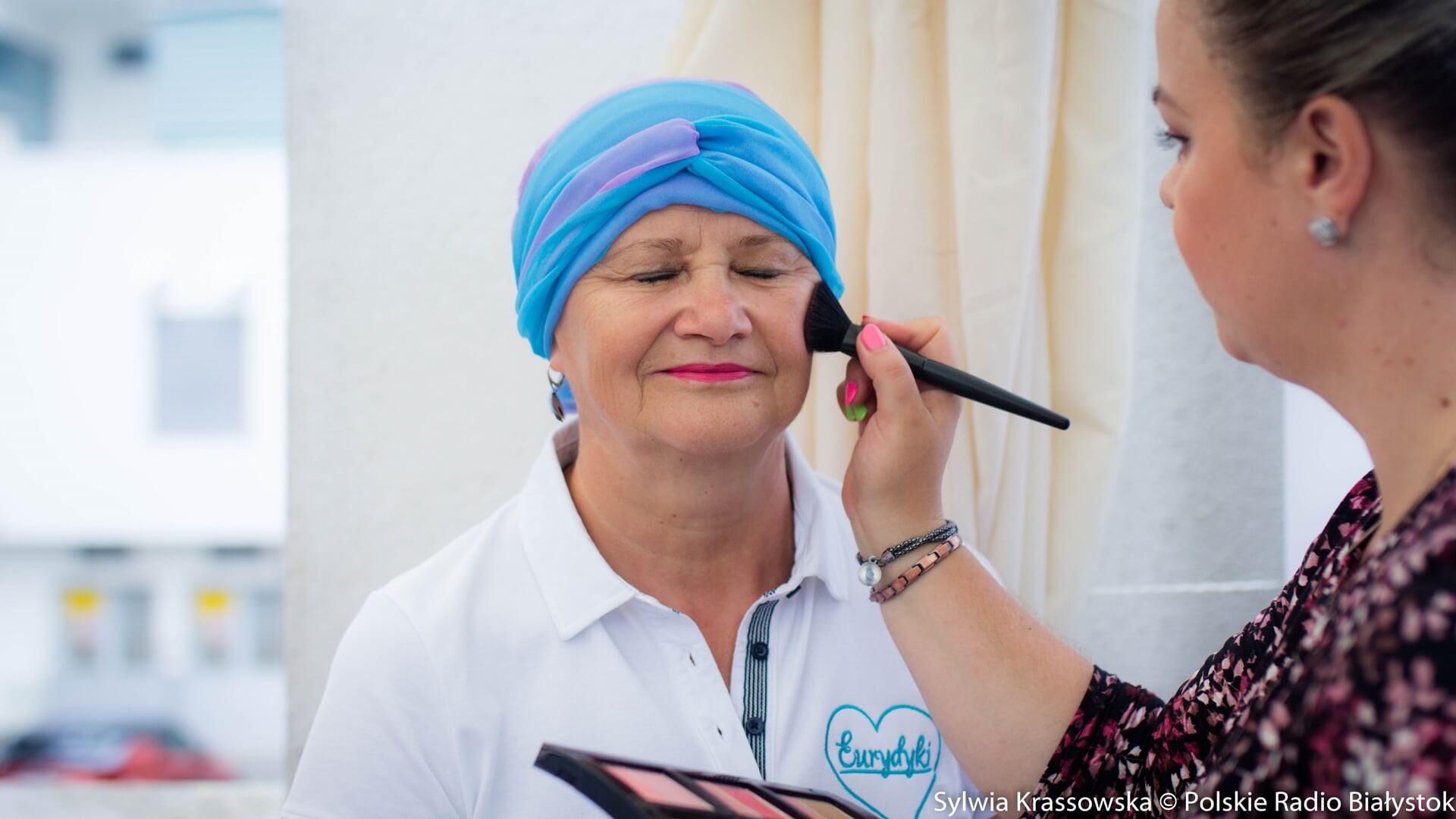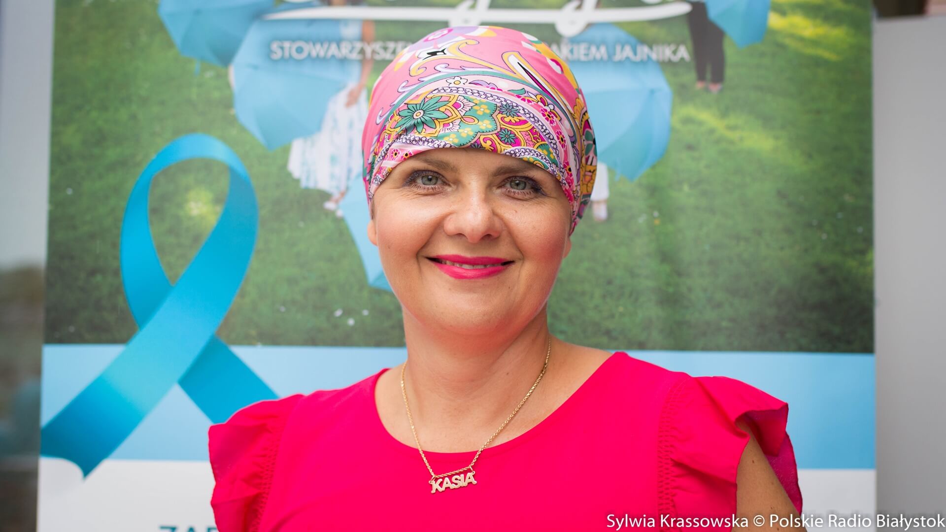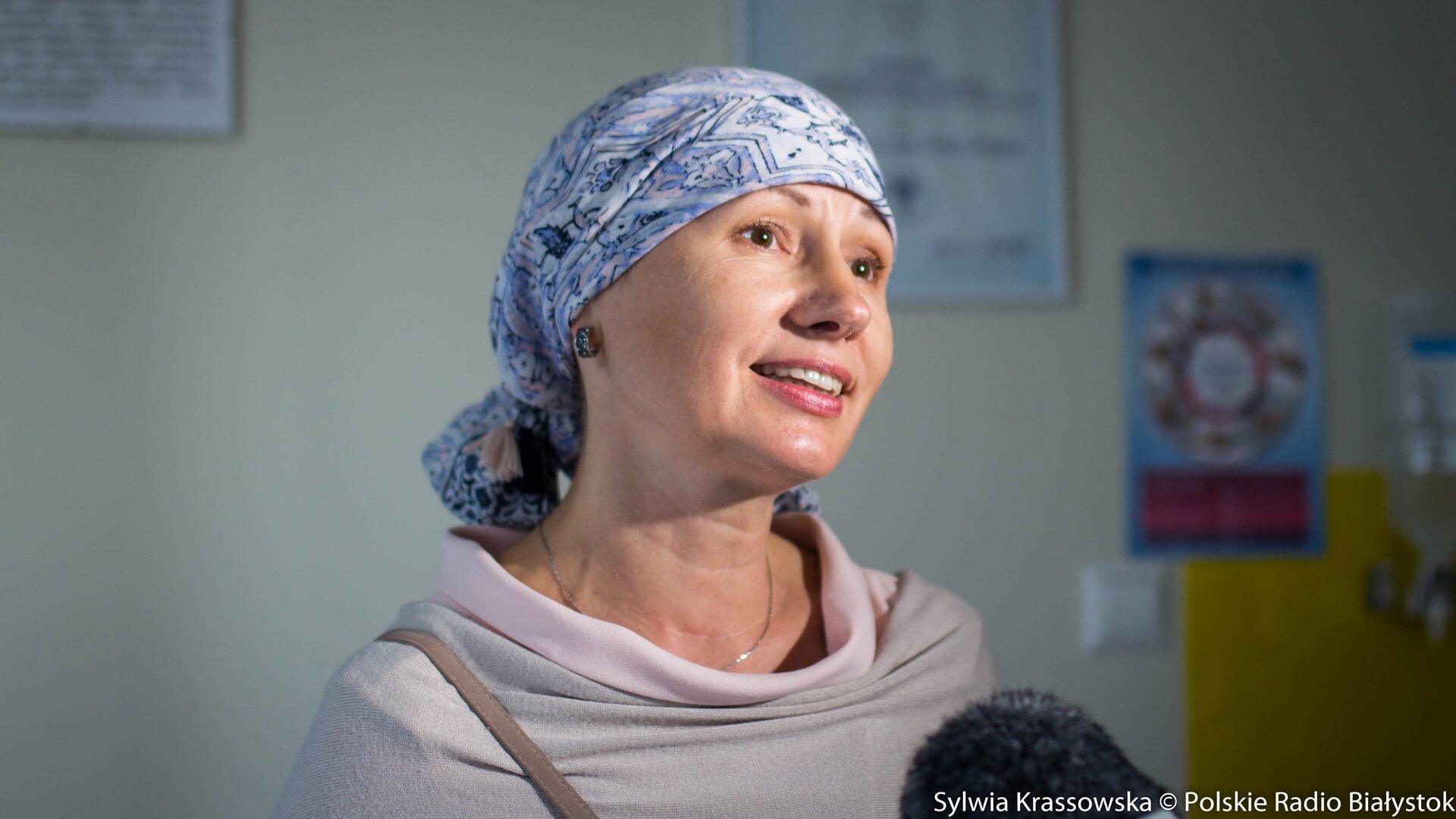 "Wiem, że dla kobiety łysa głowa to nie jest piękny widok, to nie jest fajne, a coś takiego jak tu się wydarza, czyli moc chust, które możemy sobie wybierać" – mówiła. Dodała, że emocjonalnie jest bardzo związana z tym oddziałem, na którym się leczyła, a duże wsparcie dostaje od Stowarzyszenia Eurydyki, z którego członkiniami się spotyka.